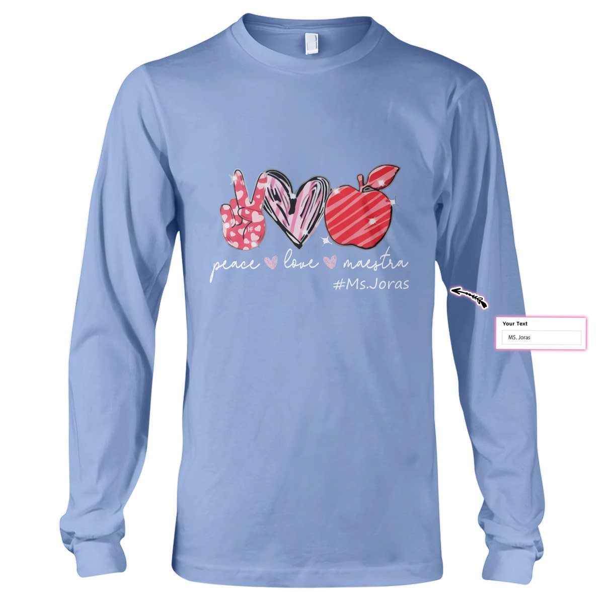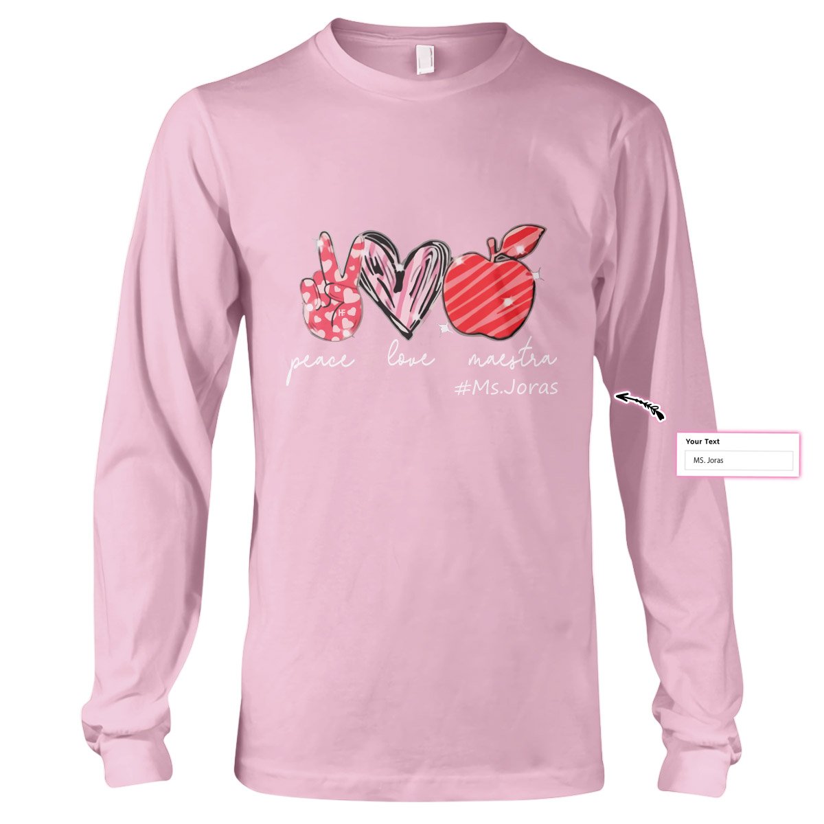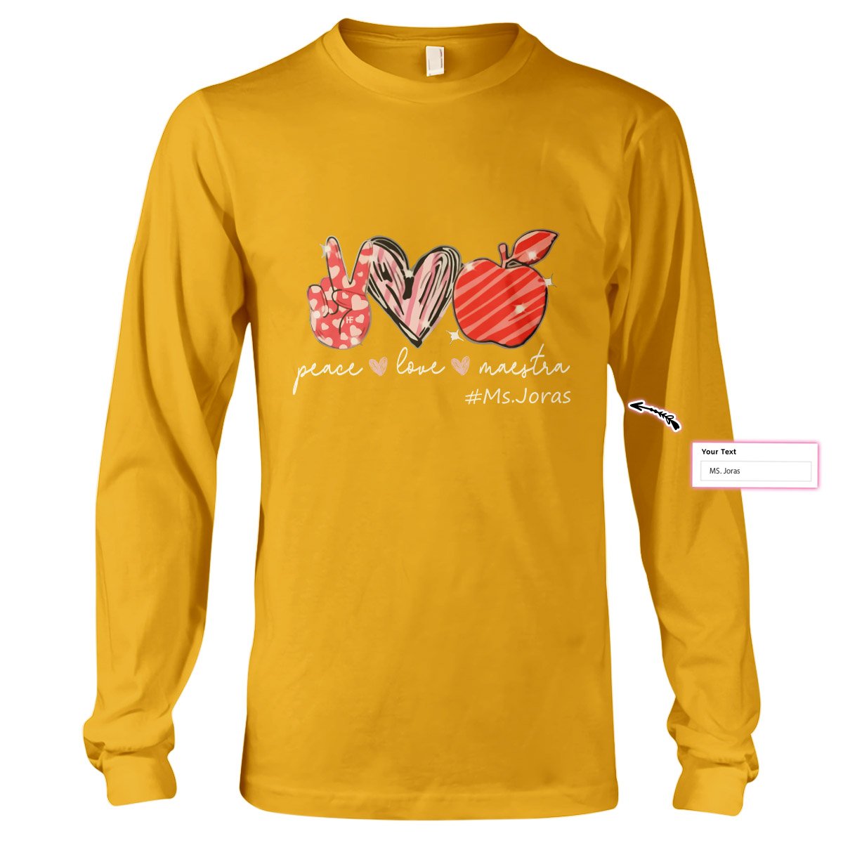Peace Love Maestra Custom Spanish Teacher Shirt, Custom Teacher Appreciation Long Sleeve T-Shirt