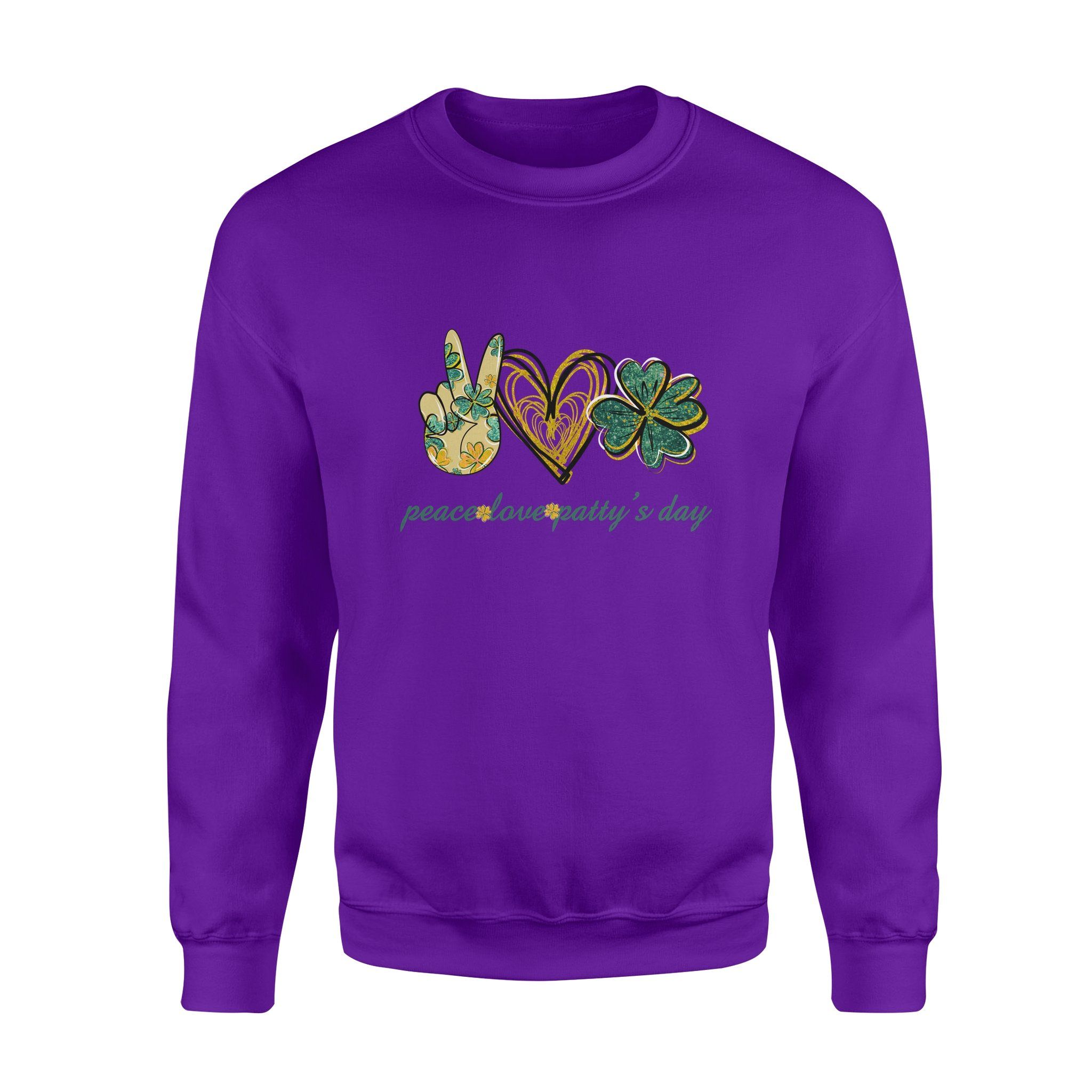So whether you're looking to show off your own name or create a personalized gift for someone special, LateAndLow Store has got you covered. Start designing your own custom Peace Love Patty_s day St. Patrick’s Day Fleece Sweatshirt print-on-demand product today, and let us bring your vision to life!