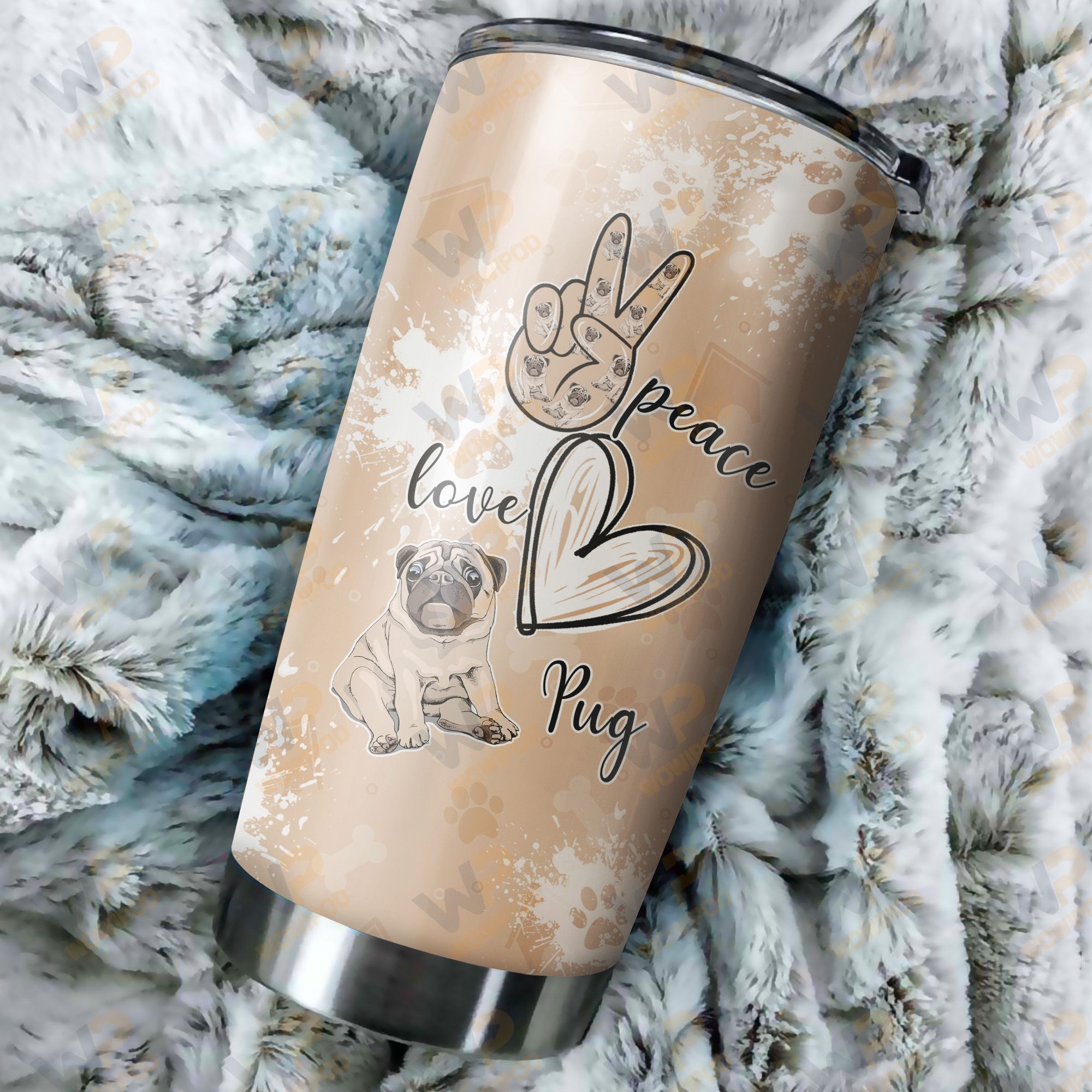 At Cotenis Store, we offer a fantastic range of print-on-demand products that can be personalized with your name. Our Peace love Pug, 20 oz stainless steel tumbler cup for dog lover print-on-demand products are the perfect way to add a personal touch to your wardrobe or to create a unique and thoughtful gift for someone special.