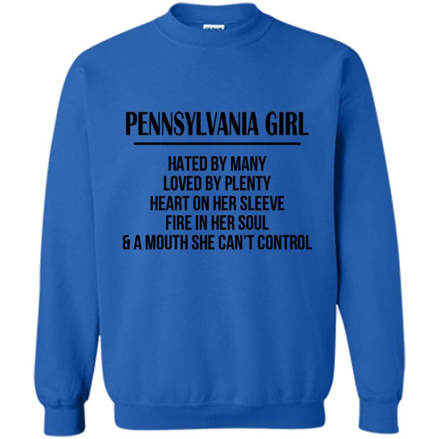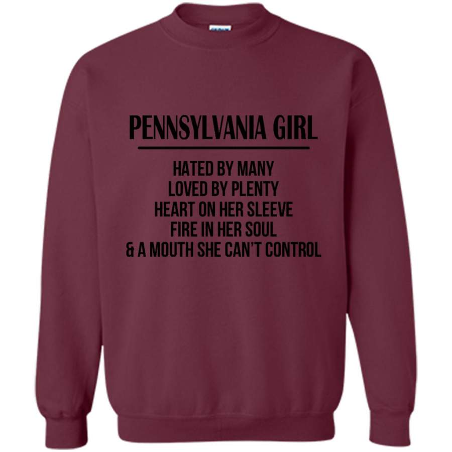 Pennsylvania Girl Hated By Many Loved By Plenty Heart On Her Sleeve Fire In Her Soul A Mouth She Can’t Control – Gildan Crewneck Sweatshirt