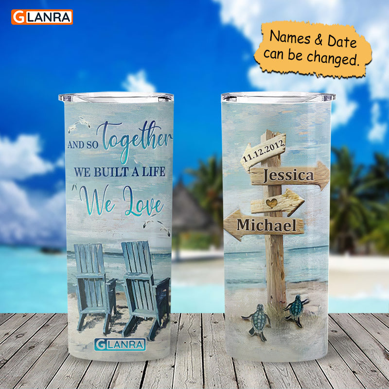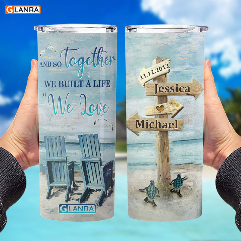 Personalized And So Together Skinny Tumbler, Custom Beach Couple Skinny Tumbler, Stainless Steel, Water Bottle, Glitter, Metal, Insulated, Tumbler