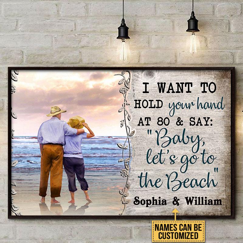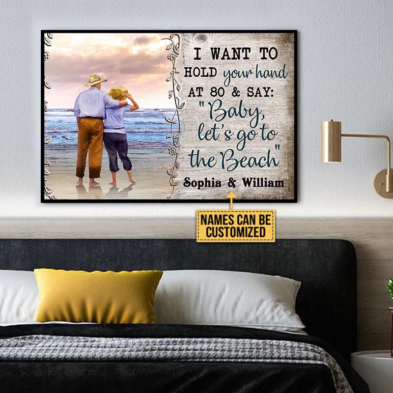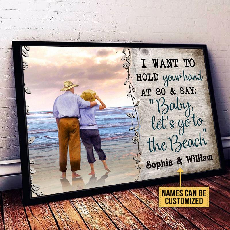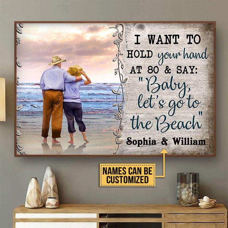 Personalized Beach Couple Hold Your Hand Custom Poster