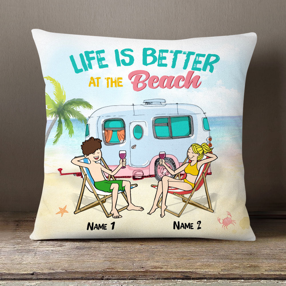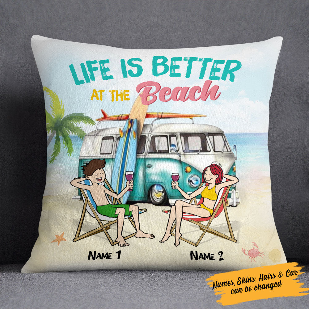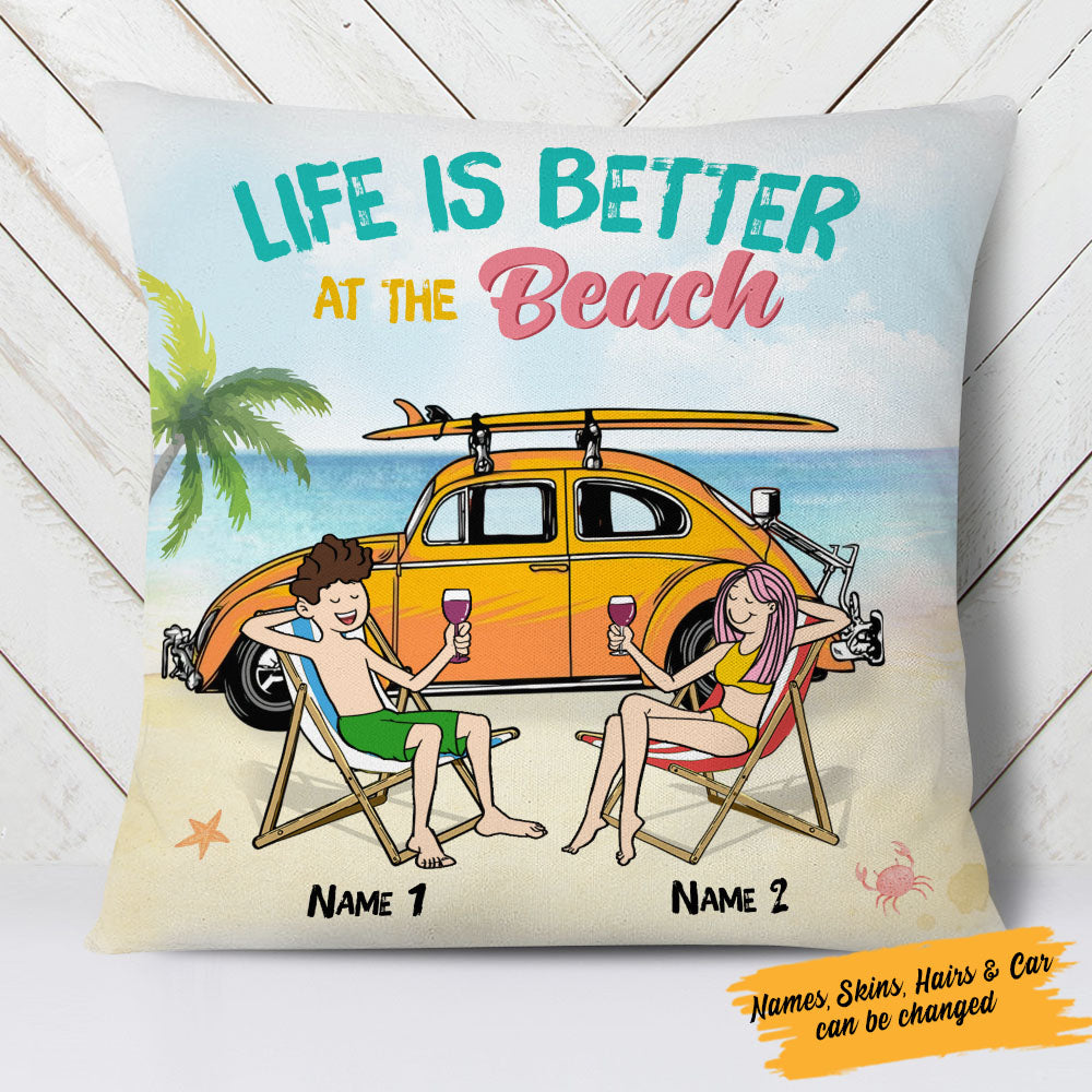 Personalized Beach Couple Life Is Better Pillow Jn161 95O58 (Insert Included)