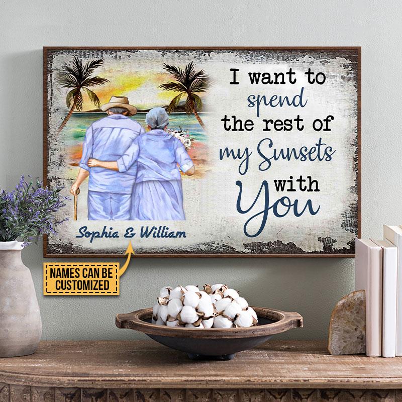 Personalized Beach Old Couple The Rest Of My Sunsets Custom Poster