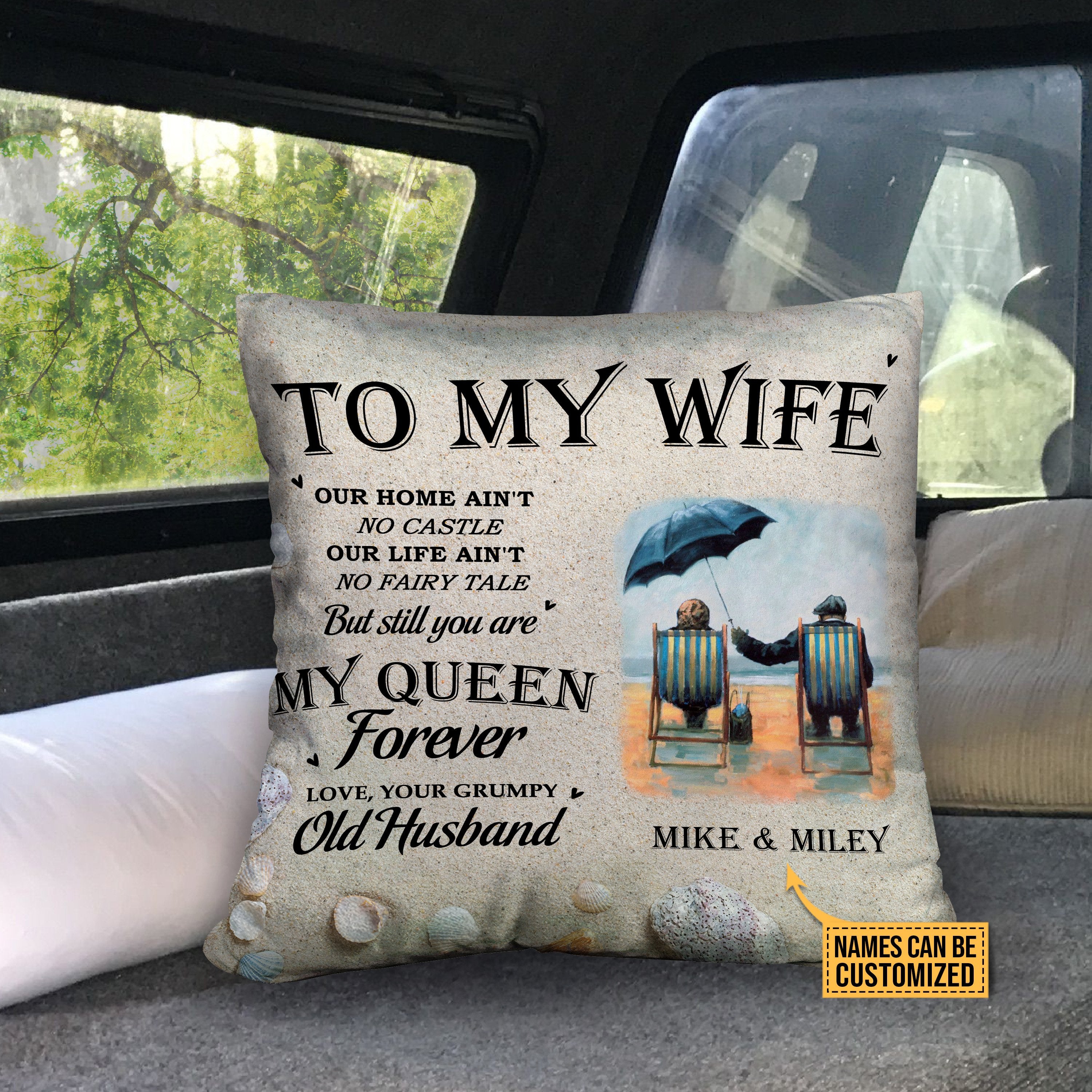 So whether you're looking to show off your own name or create a personalized gift for someone special, LateAndLow Store has got you covered. Start designing your own custom Personalized Beach Old Couple You Are My Queen Forever Customized Pillow print-on-demand product today, and let us bring your vision to life!