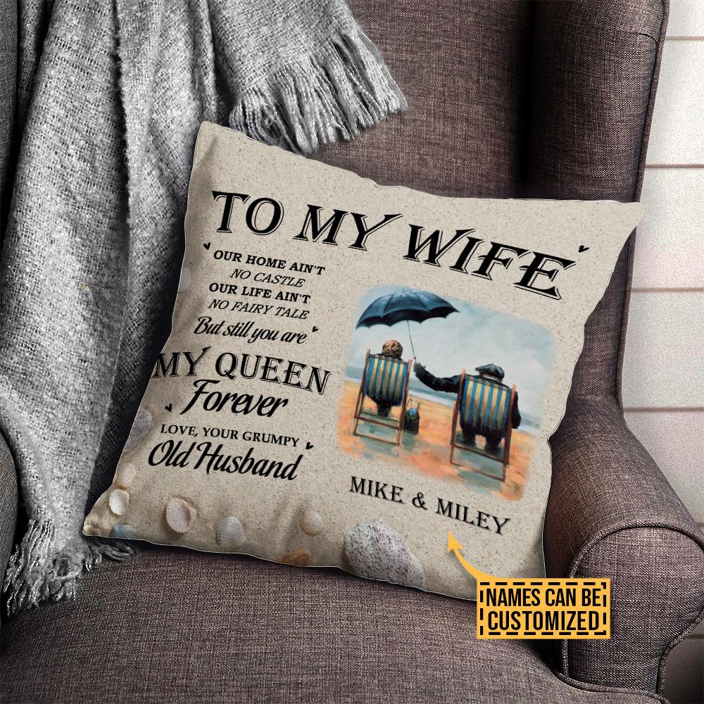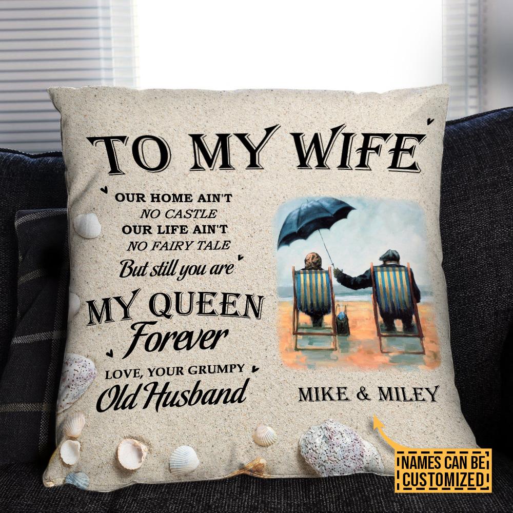Personalized Beach Old Couple You Are My Queen Forever Customized Pillow