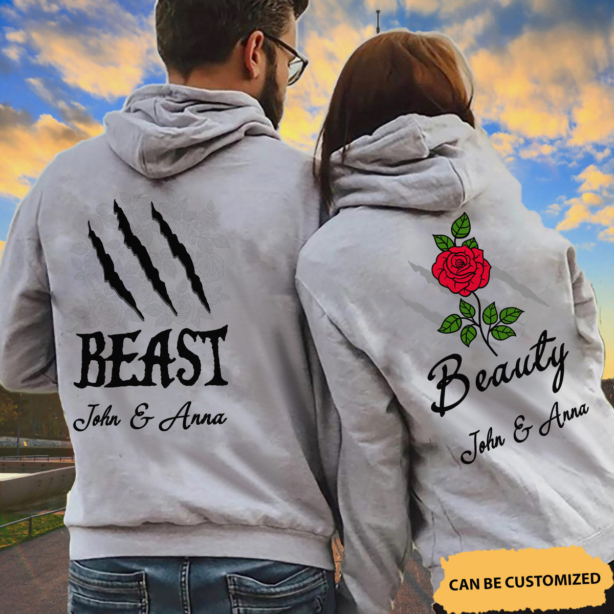 Personalized Beast Beauty Hoodie, Custom Couple Hoodie, Husband Wife Hoodie, Valentine’S Day Hoodie, Couple Unisex Hoodie, Sweater, Sweatshirt