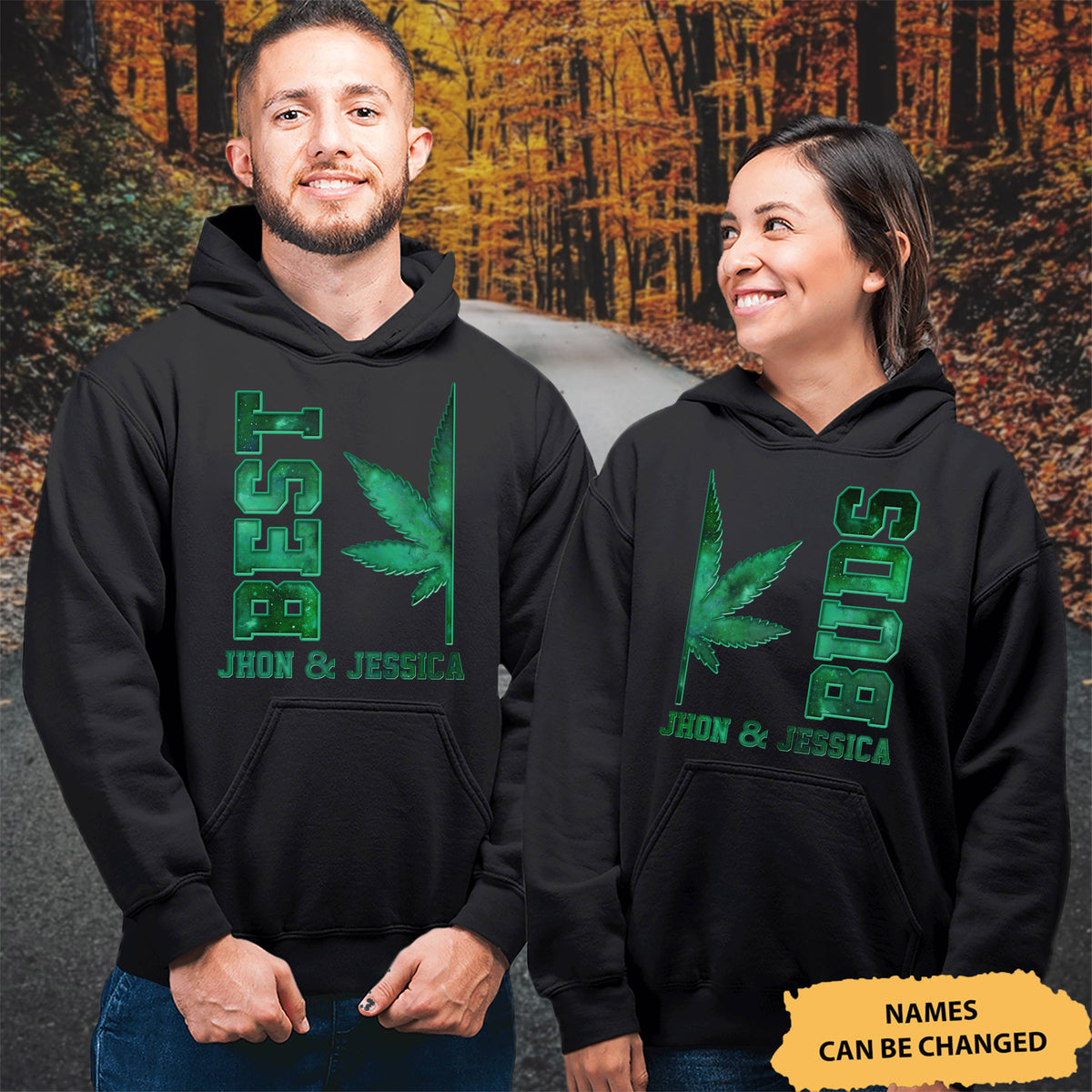 Personalized Best Buds Hoodie, Weed Lovers Hoodie, Matching Couple Hoodies, His And Hers Sweatshirts, Valentine’S Day Outfits