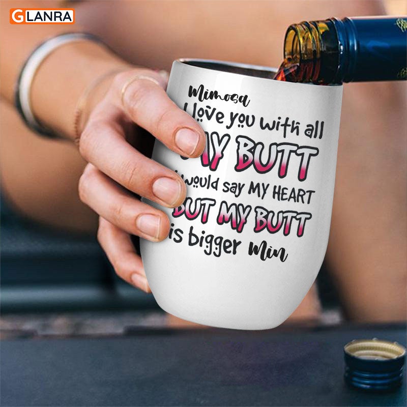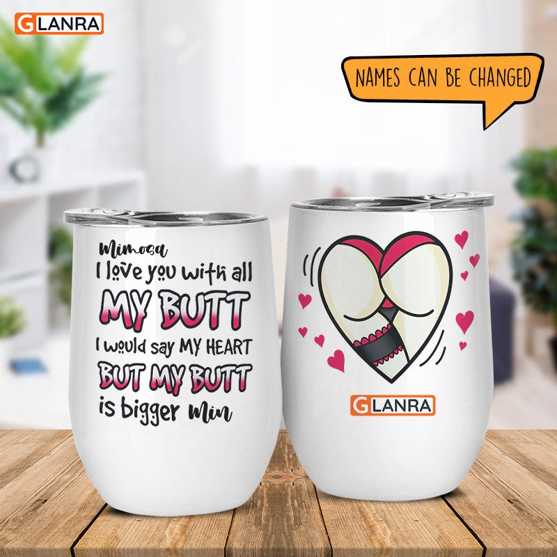 Personalized But My Butt Is Bigger Wine Tumbler, Custom Couple Wine Glasses, Wine, Stainless Steel, Water Bottle, Glitter, Metal, Insulated, Tumbler
