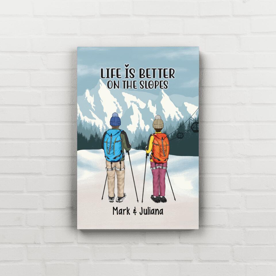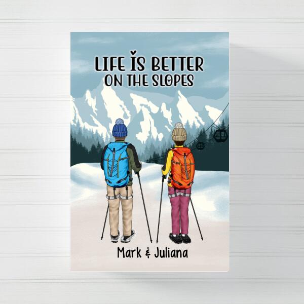 Personalized Canvas/Poster, Snowshoeing Couple And Friends, Gift For Snowshoeing Lovers