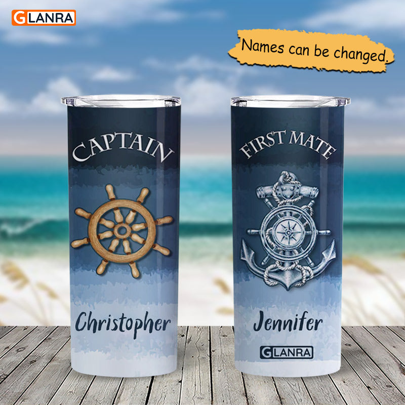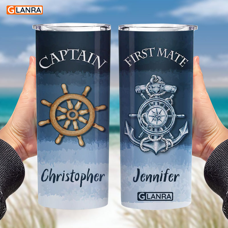 Personalized Captain First Mate Skinny Tumbler, Custom Sailor Couple Skinny Tumbler, Stainless Steel, Water Bottle, Glitter, Metal, Insulated, Tumbler