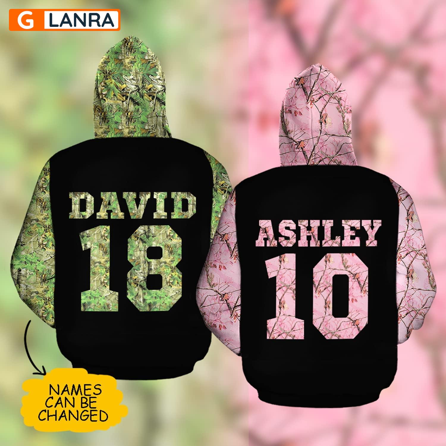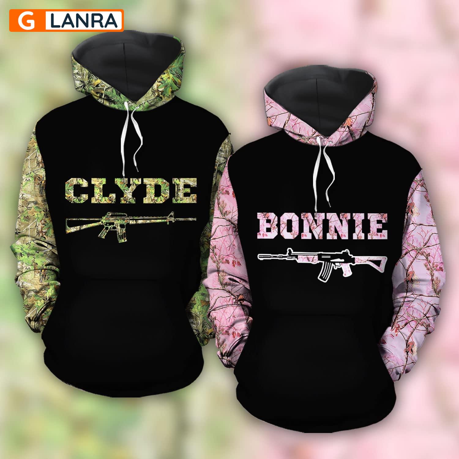Personalized Clyde Bonnie Hoodie, Custom Hunting Camo Couple Hoodie, Matching Couple Hoodie, Husband Wife Hoodie, Unisex Sweater, Sweatshirt