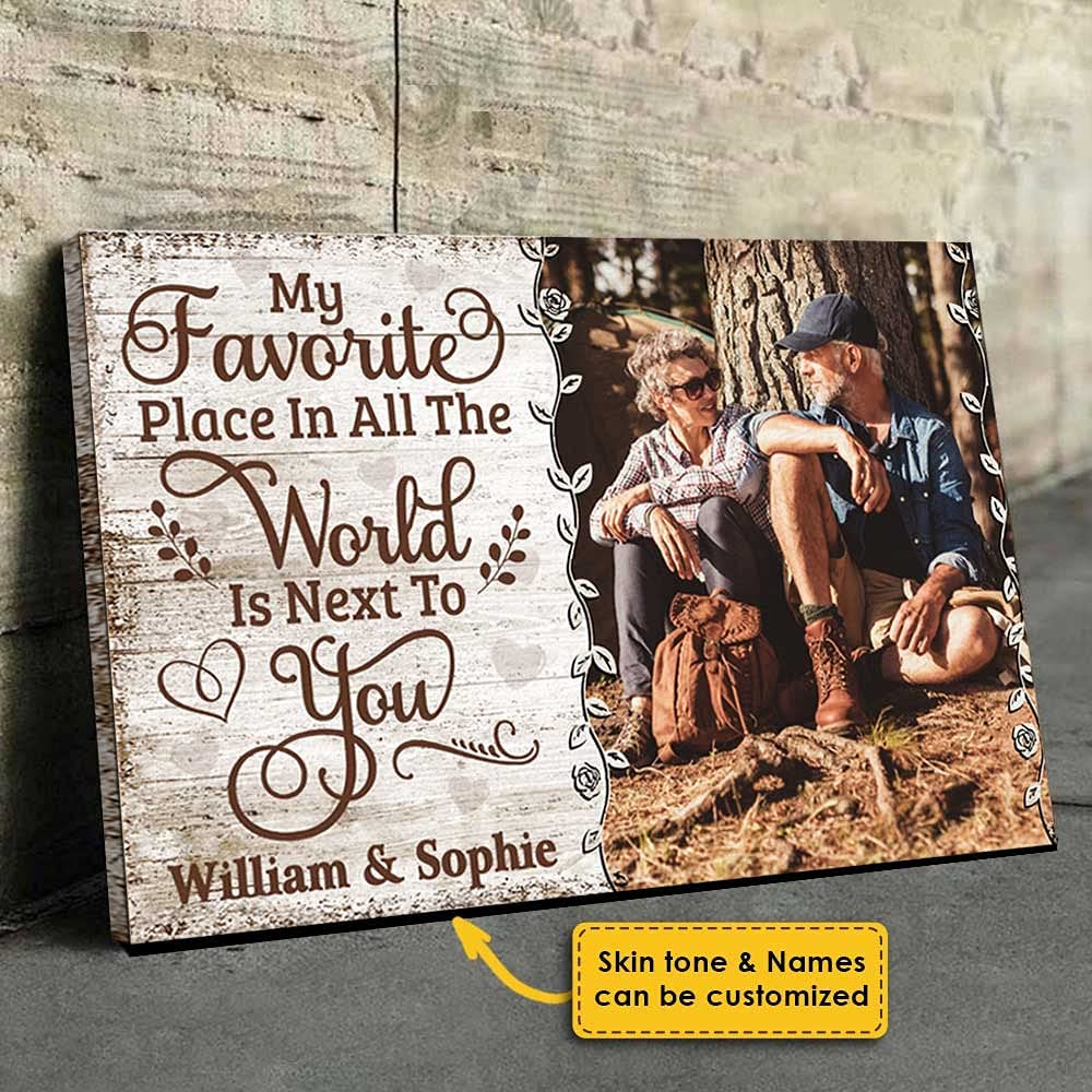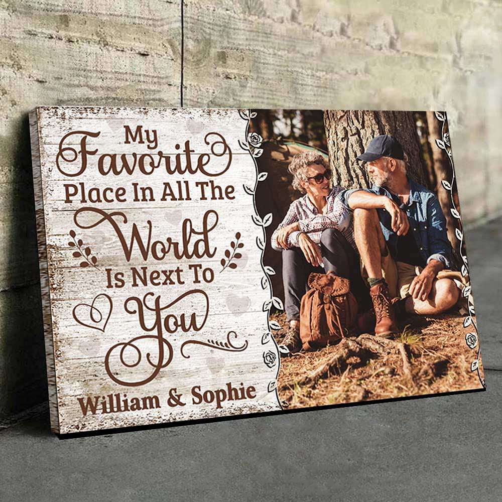 Personalized Couple Canvas Print, Favorite World You, Wedding, Custom Photo And Names Couple Horizontal Poster And Canvas