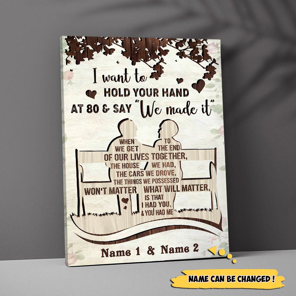 Personalized Couple Poster I Want To Hold Your Hand At 80 And Say We Made Couple Sitting On Bench It Poster Gift For Couple