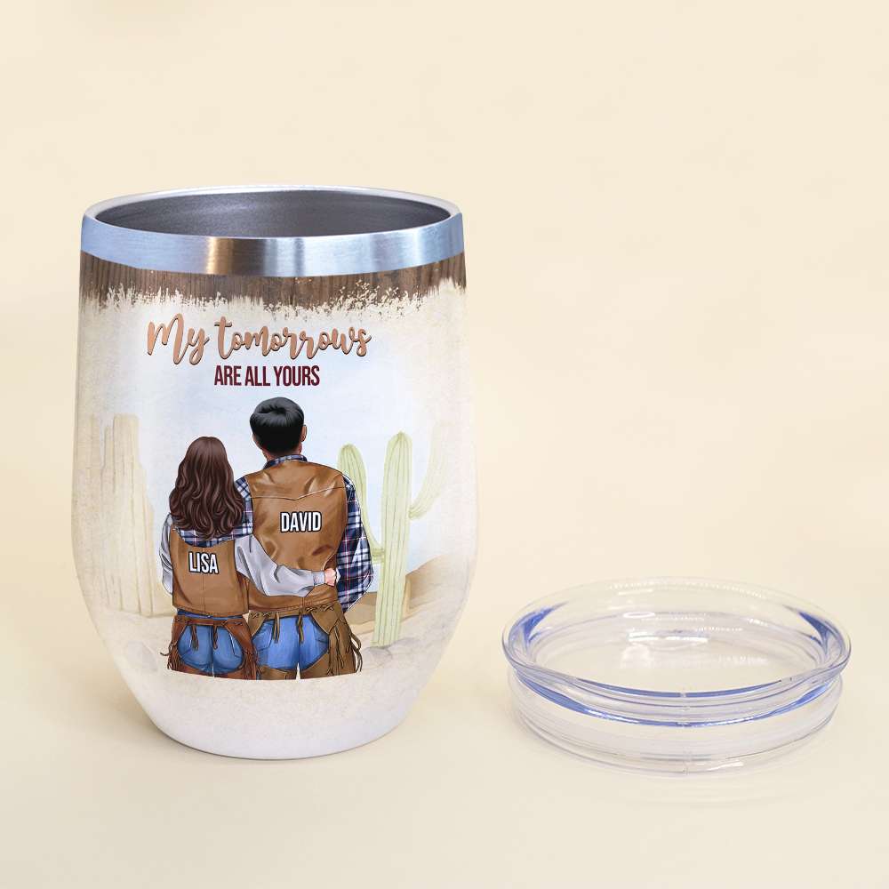 Personalized Cowboy Couple Wine Tumbler – Every Love Story Is Beautiful – Couple Shoulder To Shoulder