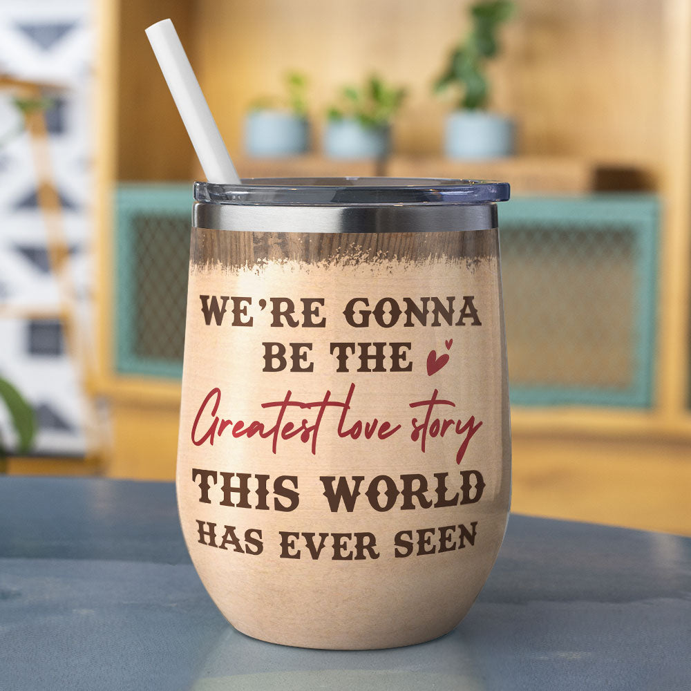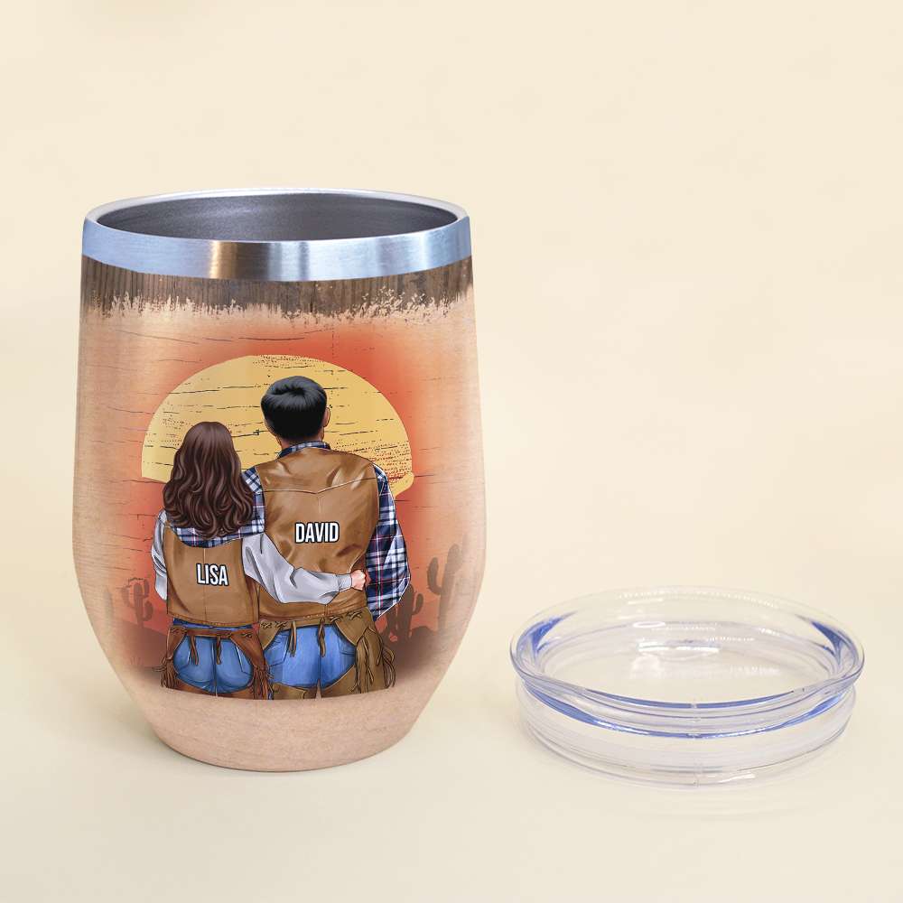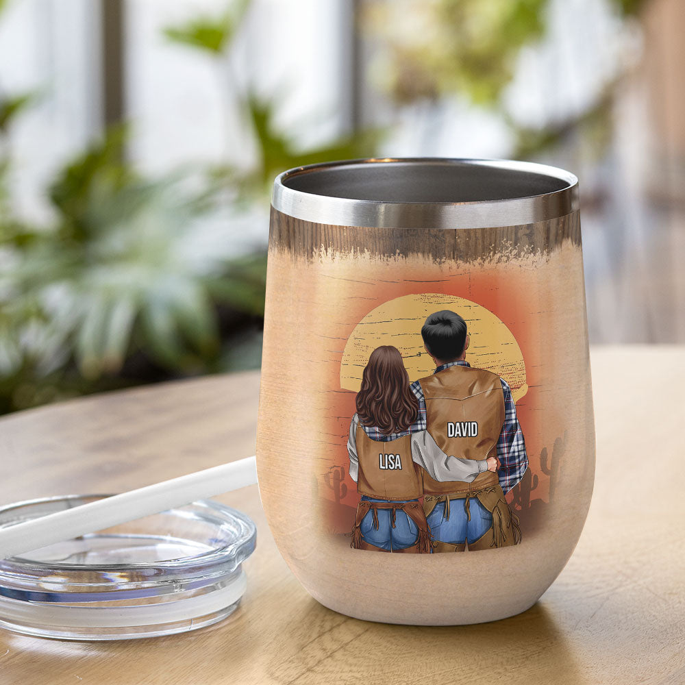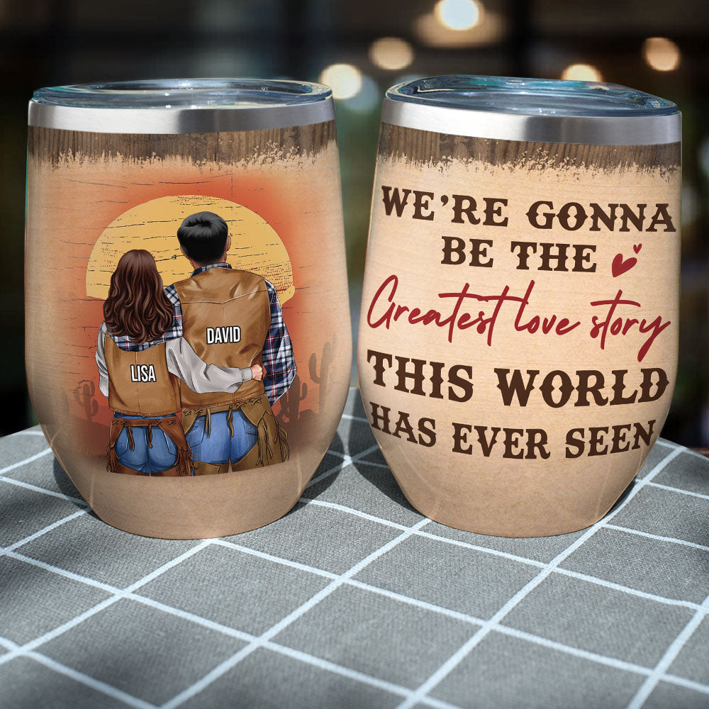 Personalized Cowboy Couple Wine Tumbler – We’Re Gonna Be The Greatest Love Story – Desert Theme