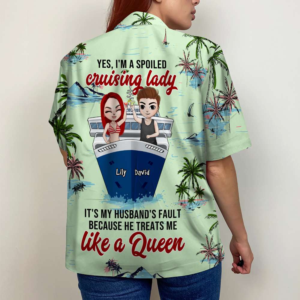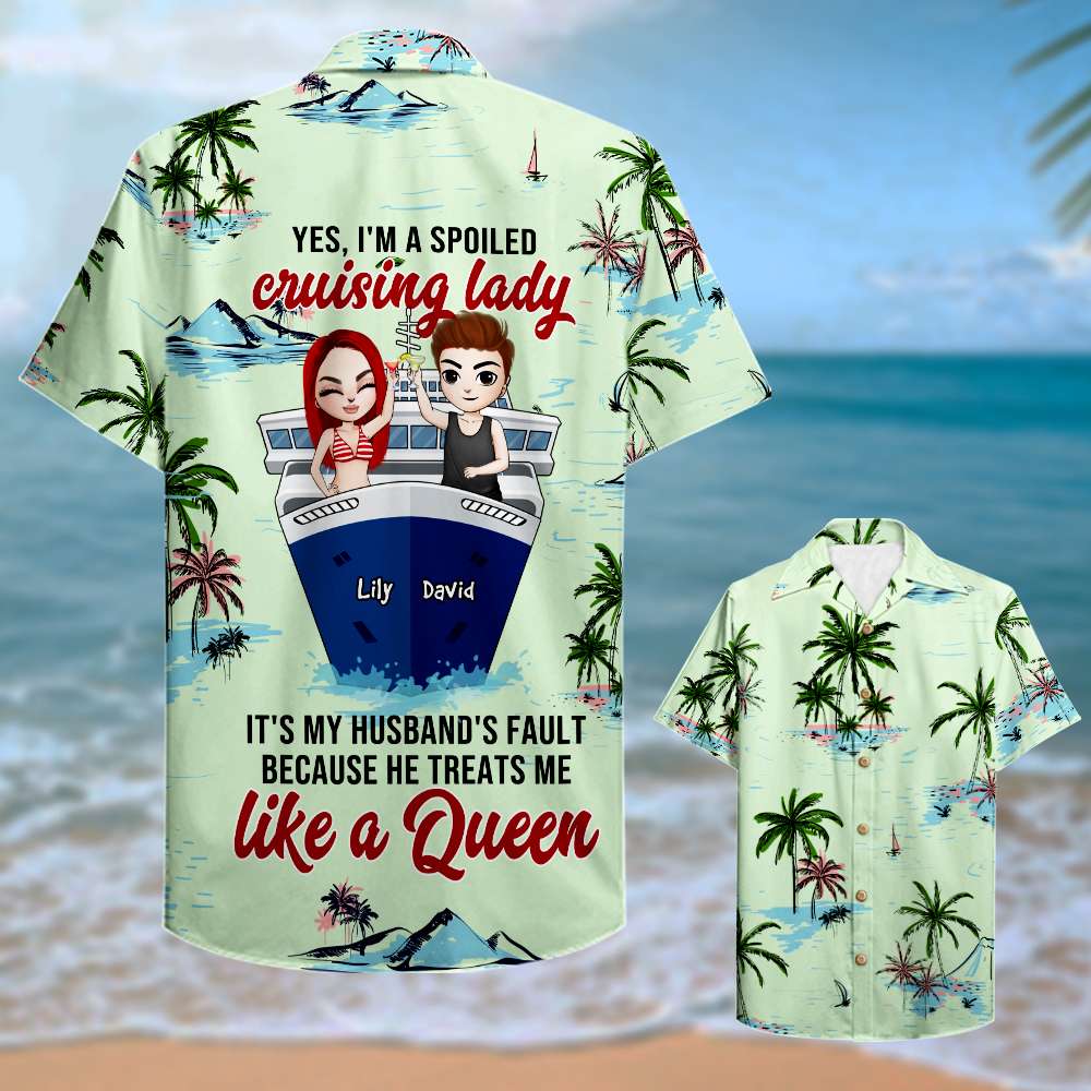 Personalized Cruising Couple Hawaiian Shirt – Yes, I’M A Spoiled Lady – Palm Tree Pattern