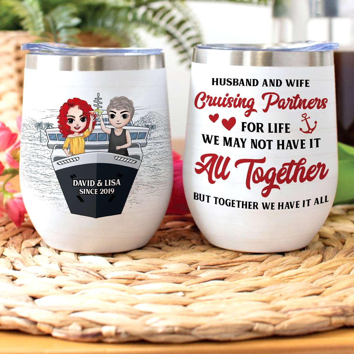 Personalized Cruising Couple Wine Tumbler – Husband And Wife, Cruising Partners For Life