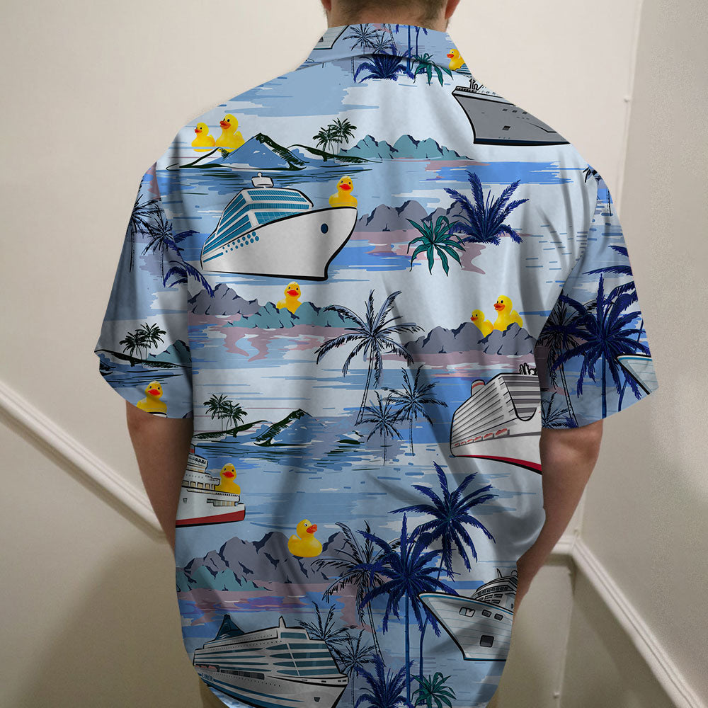 Personalized Cruising Duck Couple Hawaiian Shirt – Making Waves On The High Seas – Cruise & Palm Treen Pattern
