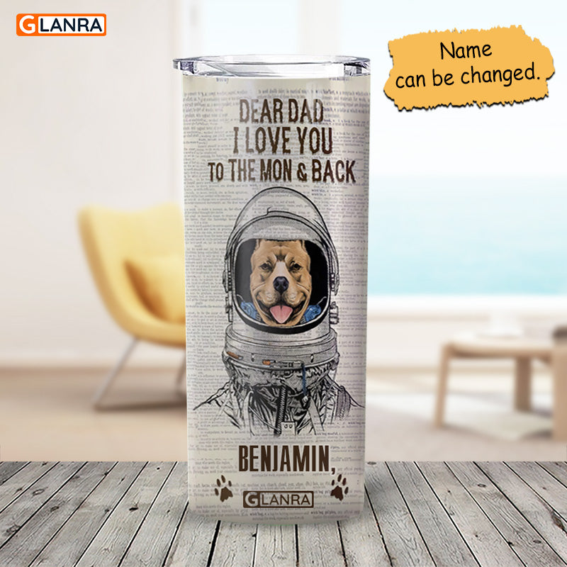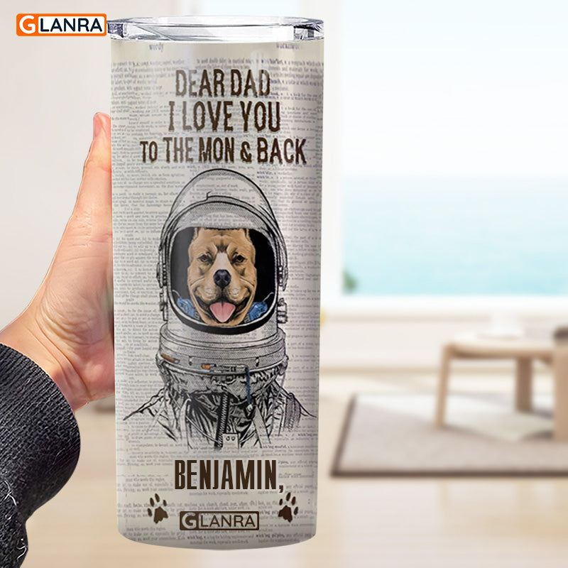 Personalized Dear Dad I Love You To The Mon & Back Skinny Tumbler, Custom Dog Dad Stainless Steel, Water Bottle, Glitter, Metal, Insulated, Tumbler