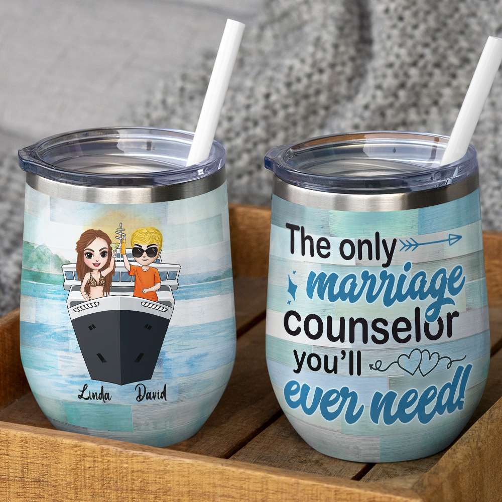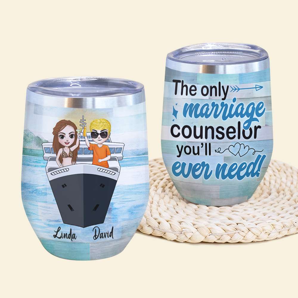 Personalized Drinking & Cruising Couple Wine Tumbler – The Only Marriage Counselor You’Ll Ever Need Fol8-Vd3