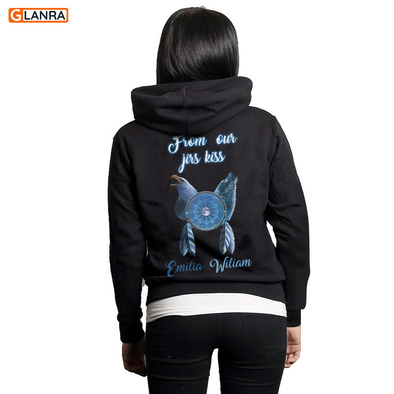 Our print-on-demand products are made with the highest quality materials, ensuring that your personalized Personalized From Our First Kiss Till Our Last Breath Hoodie, Custom Wolf Bald Eagles Couple Hoodie, Matching Couple Unisex Sweater, Sweatshirt design looks great and feels comfortable. You can wear your new custom product with pride or give it as a unique and memorable gift that will be cherished for years to come.