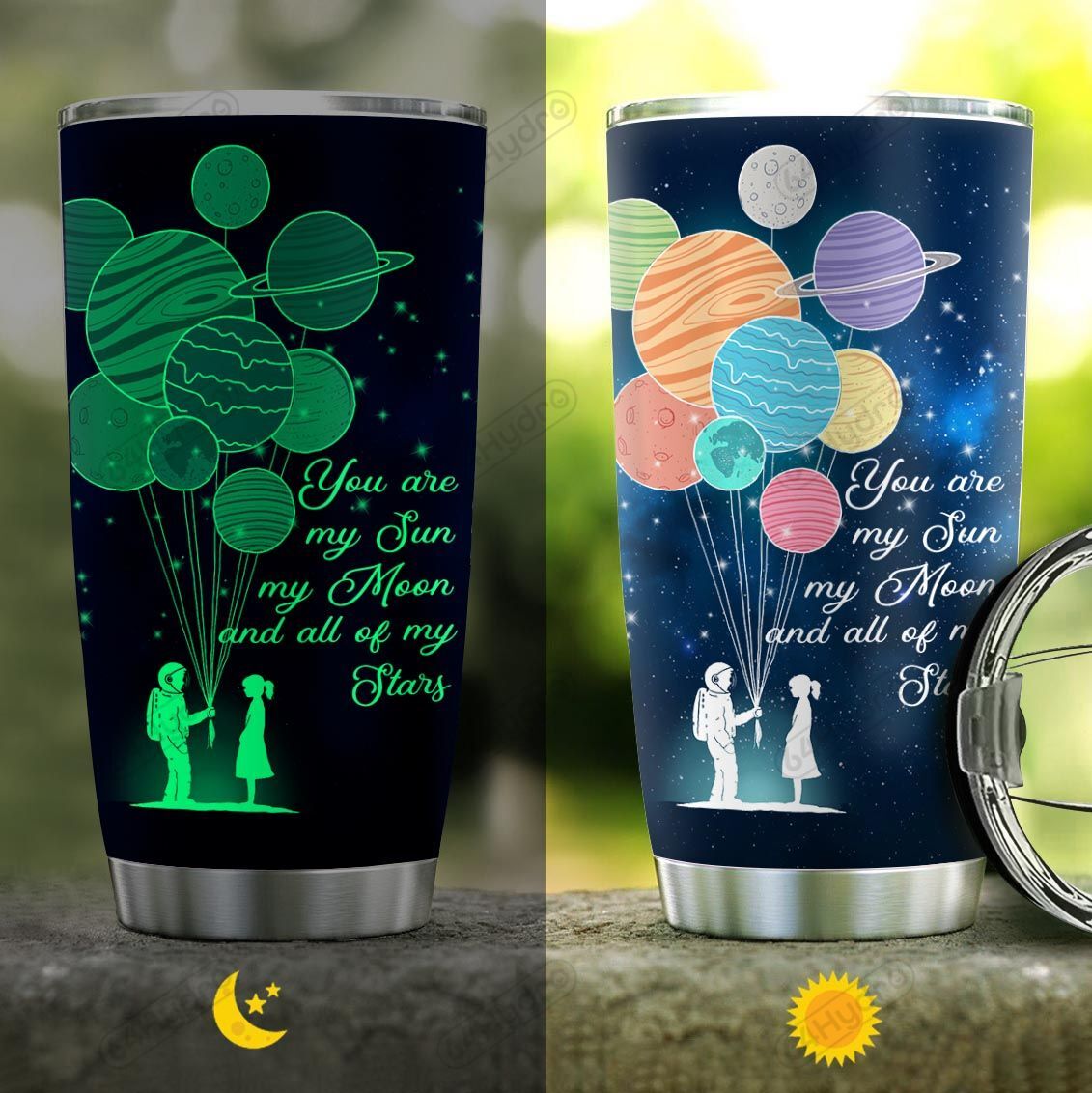 So whether you're looking to show off your own name or create a personalized gift for someone special, LateAndLow Store has got you covered. Start designing your own custom Personalized Galaxy Couple Ntz2110002 Luminous Stainless Steel Tumbler print-on-demand product today, and let us bring your vision to life!