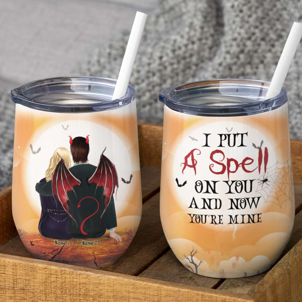 Personalized Gifts Ideas For Couple, I Put A Spell On You And Now You’Re Mine Custom Wine Tumbler