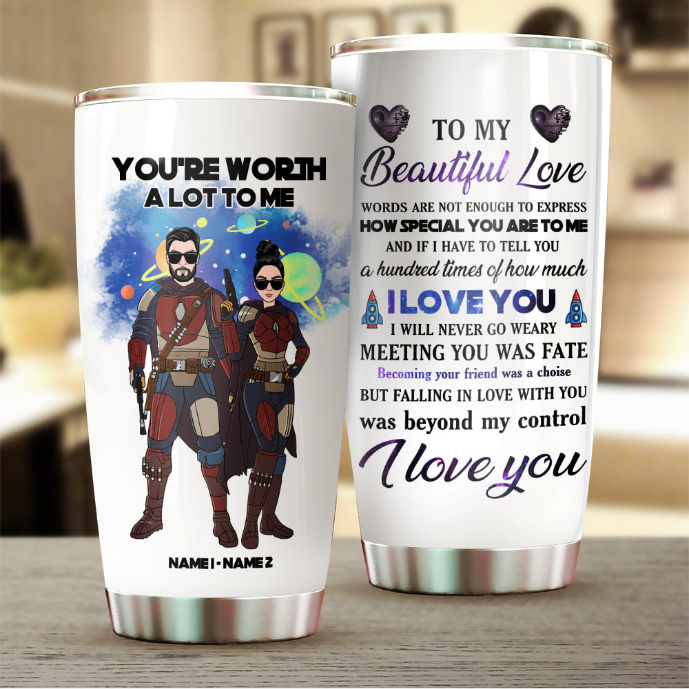 So whether you're looking to show off your own name or create a personalized gift for someone special, LateAndLow Store has got you covered. Start designing your own custom Personalized Gifts Ideas For Couple, You’Re Worth A Lot To Me Custom 20Oz Stainless Steel Tumbler print-on-demand product today, and let us bring your vision to life!
