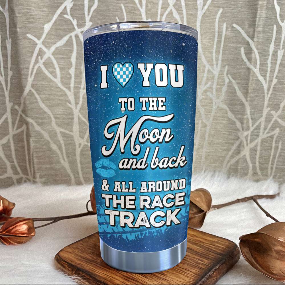 Personalized Gifts Tumbler Ideas For Racing Couple, I Love You To The Moon And Back Custom 20Oz Stainless Steel