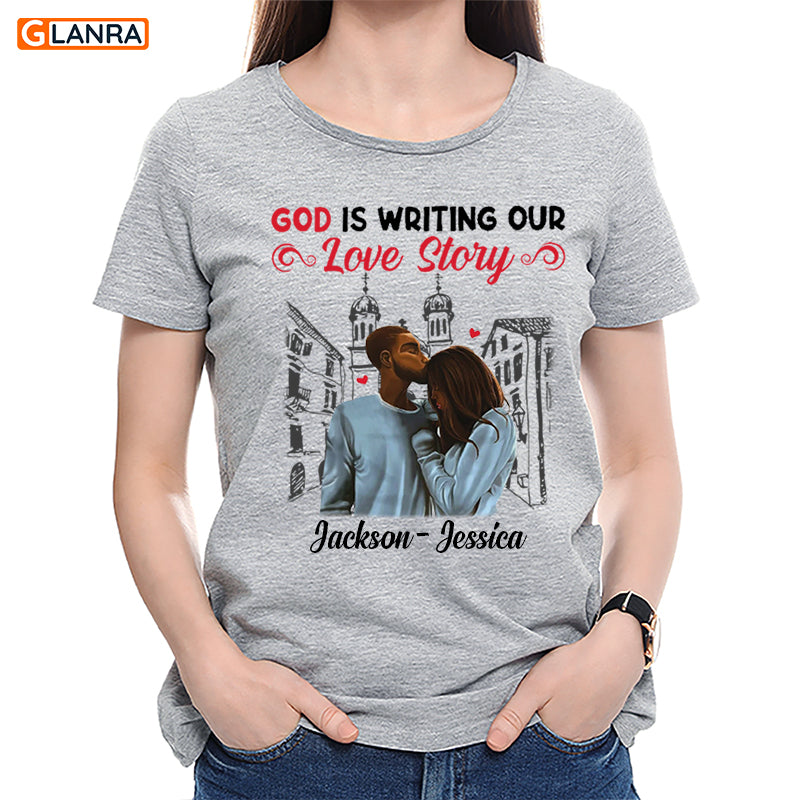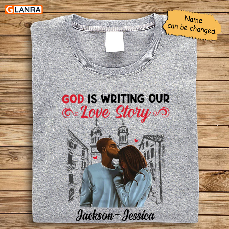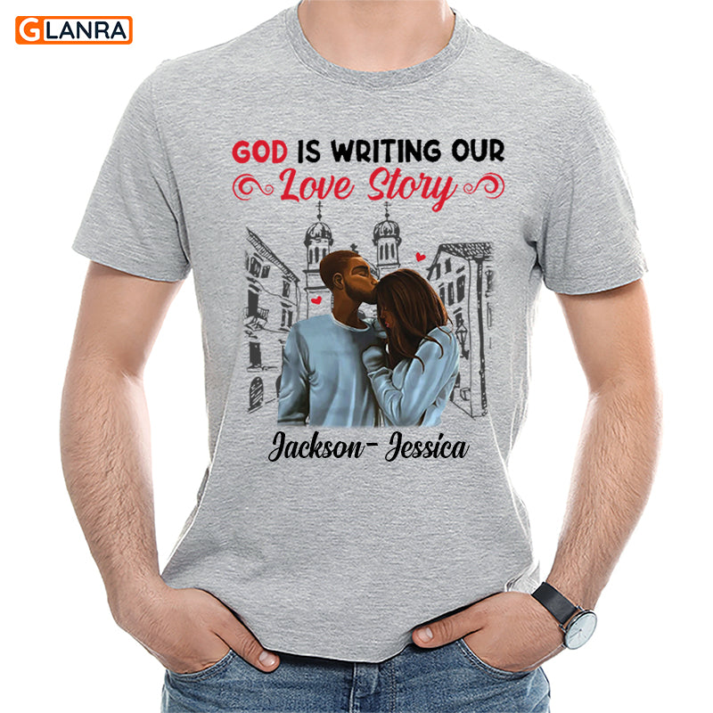 Personalized God Is Writing Our Love Story Shirt, Custom Couple Shirt, Matching Couple Shirt, Christian Couple Shirt, Valentine Shirt, T-Shirt, Tee