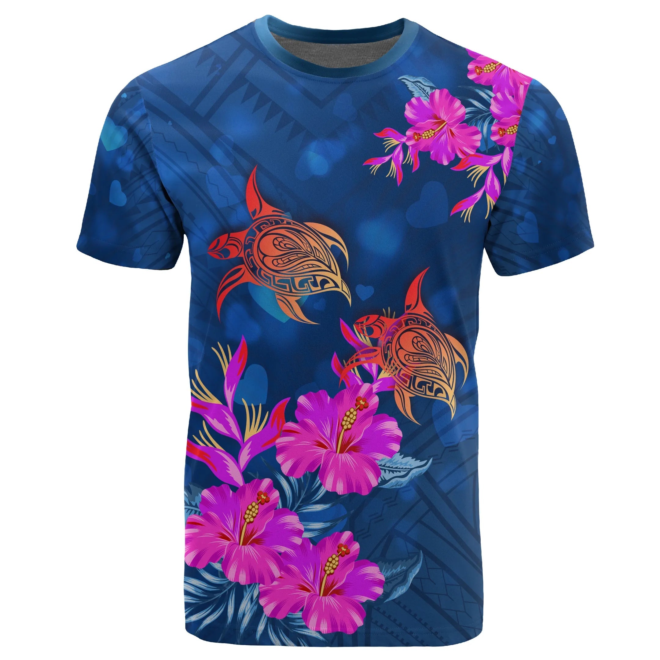 Personalized Hawaii Couple Turtle Hibiscus Valentine T-Shirt Light Style