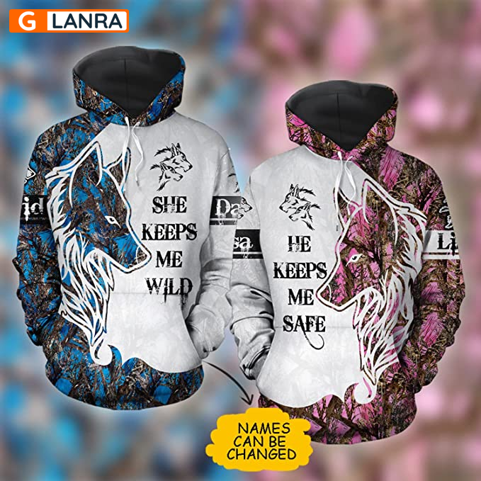 So whether you're looking to show off your own name or create a personalized gift for someone special, LateAndLow Store has got you covered. Start designing your own custom Personalized He Keeps Me Safe She Keeps Me Wild Hoodie, Custom Wolf Couple Hoodie, Couple Hoodie, Husband Wife Hoodie, Unisex Sweater, Sweatshirt print-on-demand product today, and let us bring your vision to life!