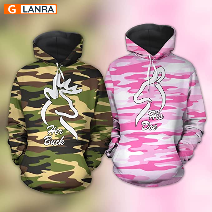 Personalized His Doe Her Buck Hoodie, Custom Deer Couple Hoodie, Camo Couple Hoodie, Husband Wife Hoodie, Unisex Sweater, Sweatshirt