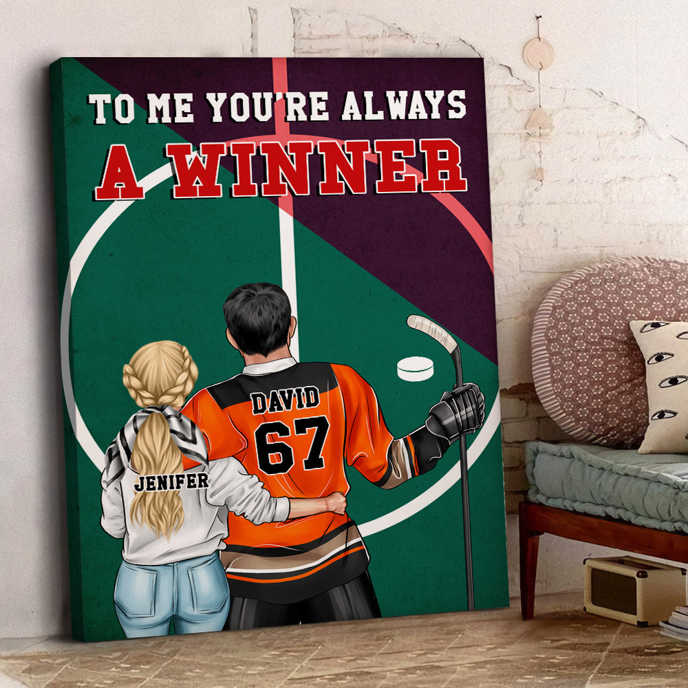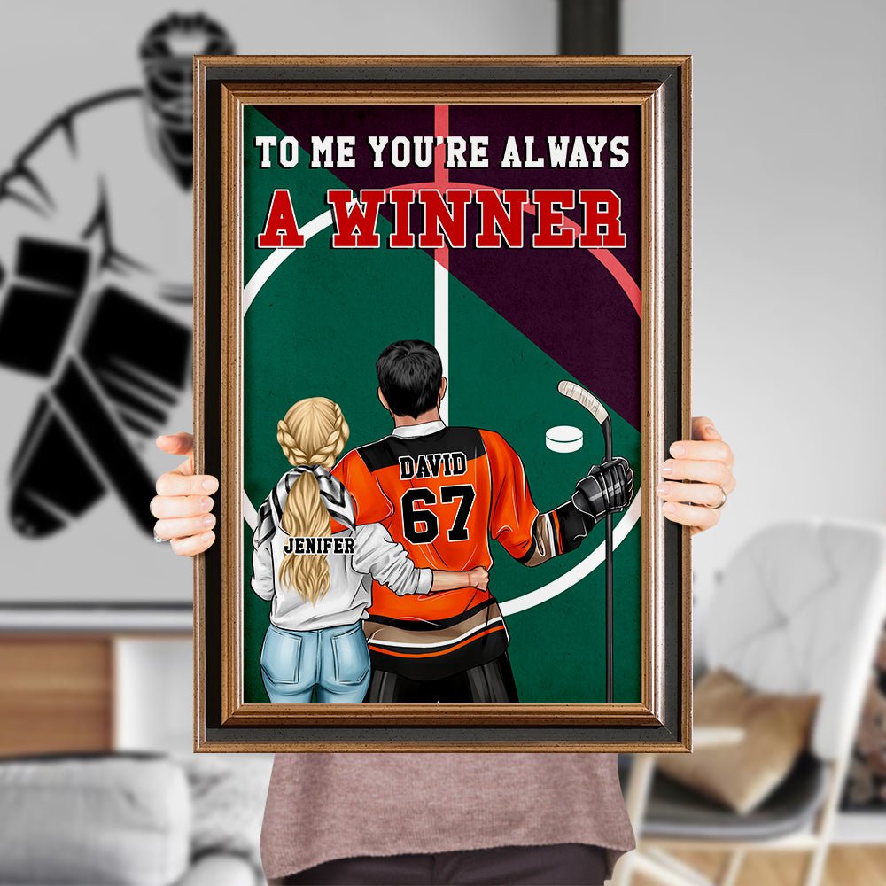 Personalized Hockey Couple Poster – To Me You’Re Always A Winner – Couple Shoulder To Shoulder