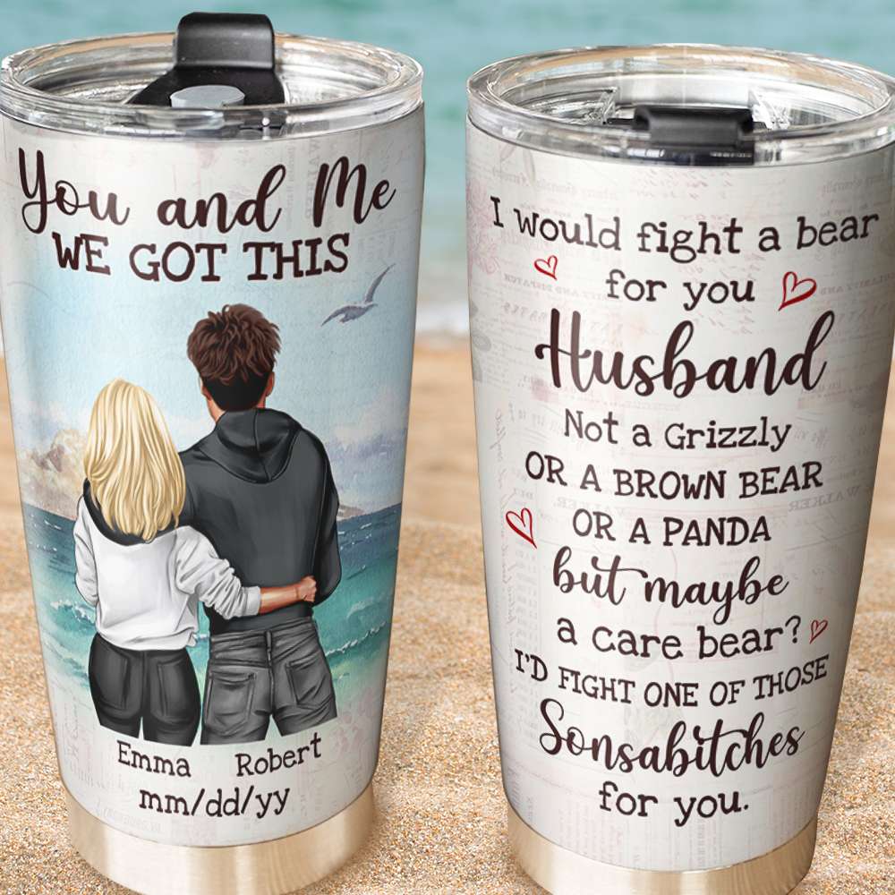 Personalized Hoodie Couple Tumbler Cup – I Would Fight A Bear For You – You And Me We Got This
