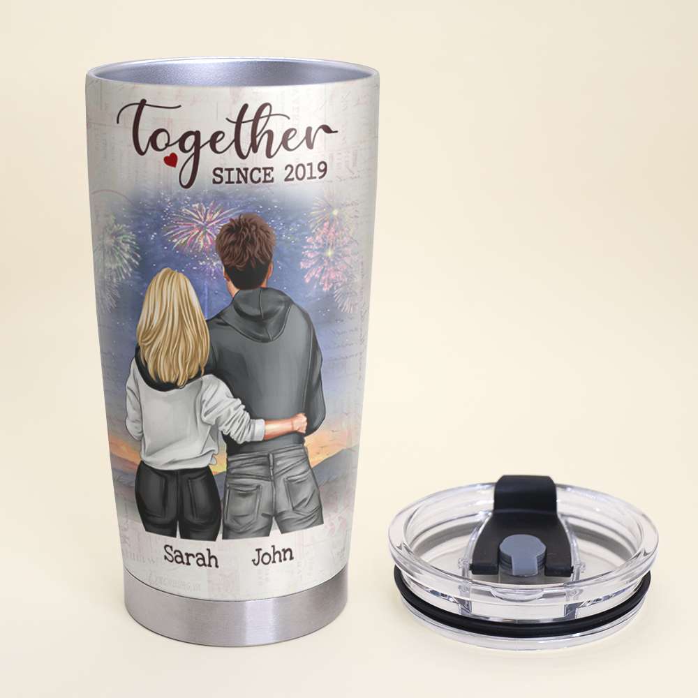 Personalized Hoodie Couple Tumbler Cup – Together Since The Day I Met You