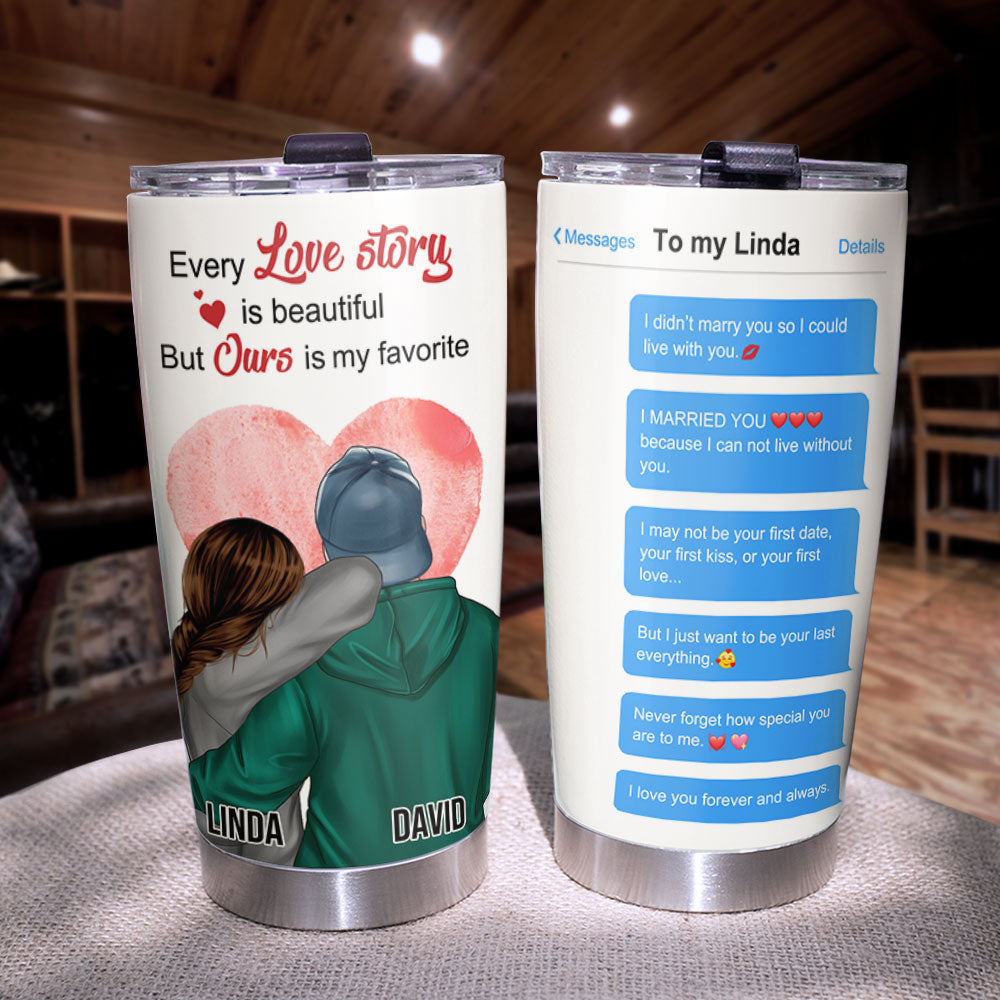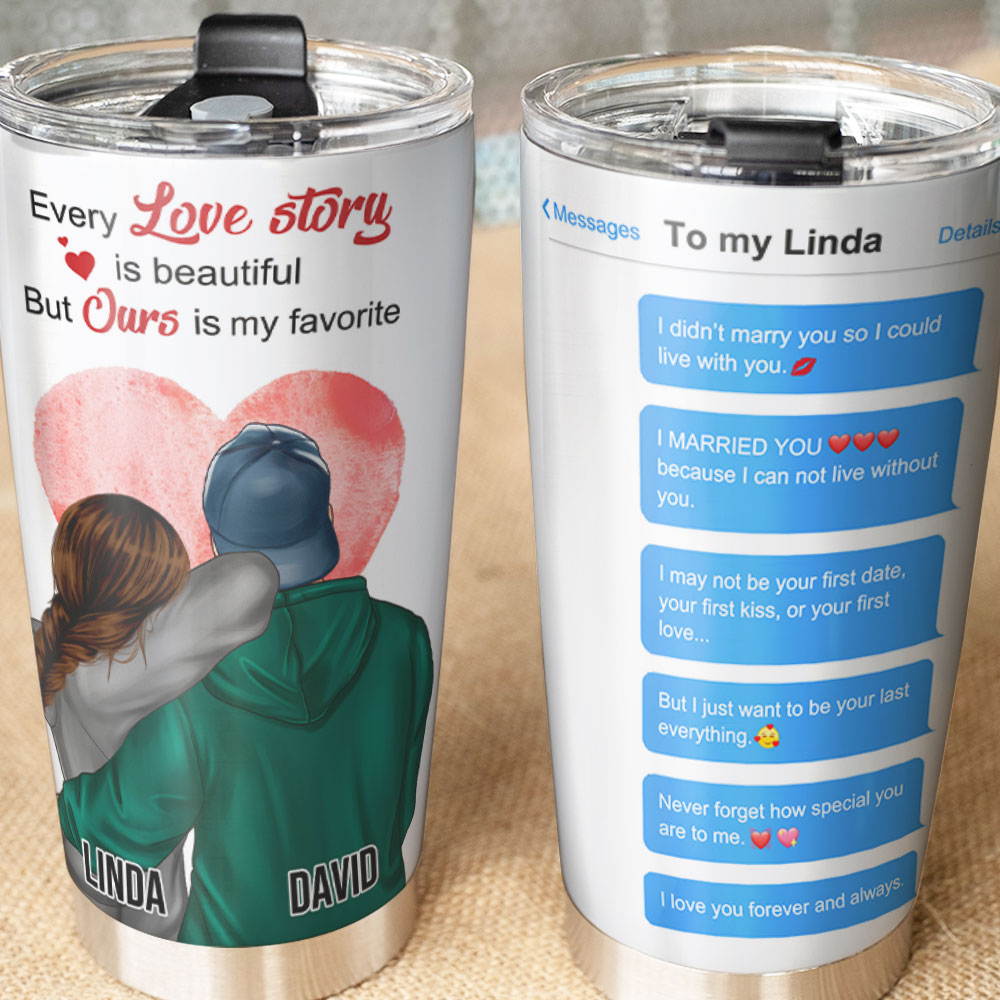 Personalized Hoodie Couple Tumbler – Every Love Story Is Beautiful – Conversation