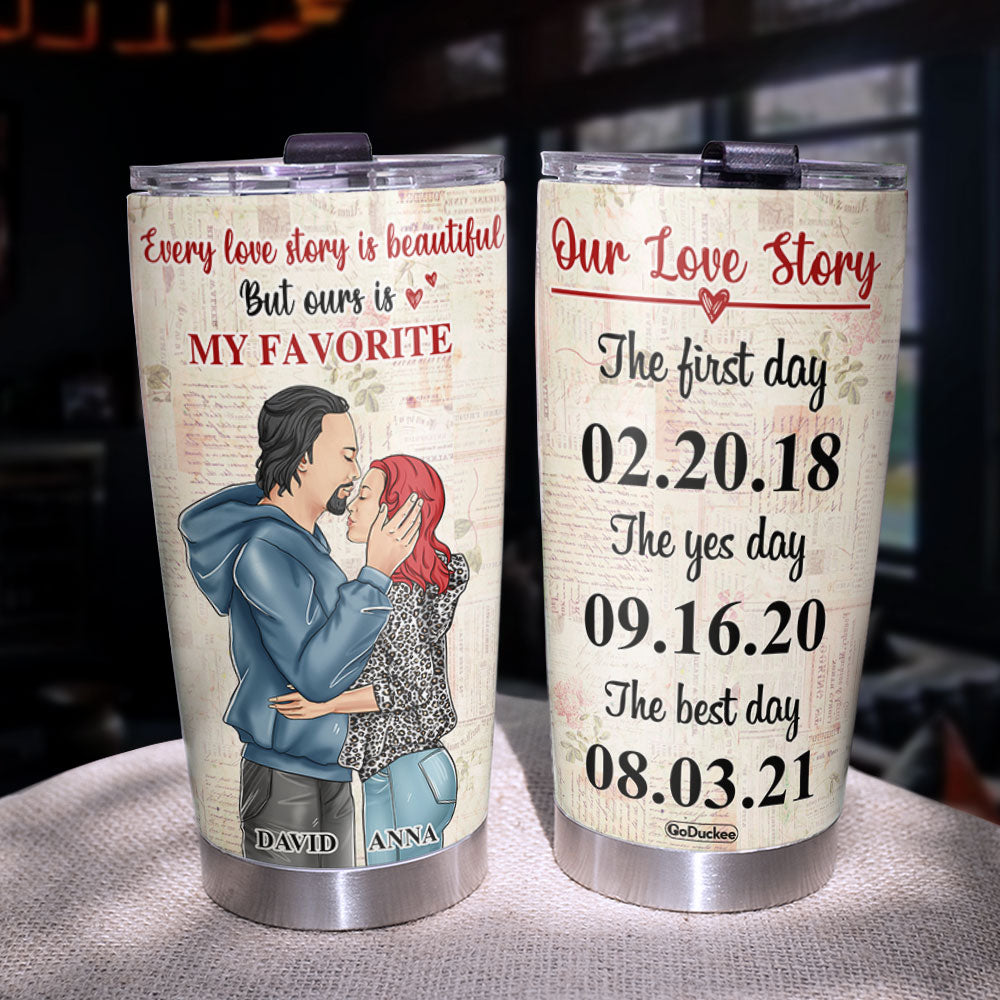 Personalized Hoodie Couple Tumbler – Our Love Story, The First Day, The Yes Day, The Best Day