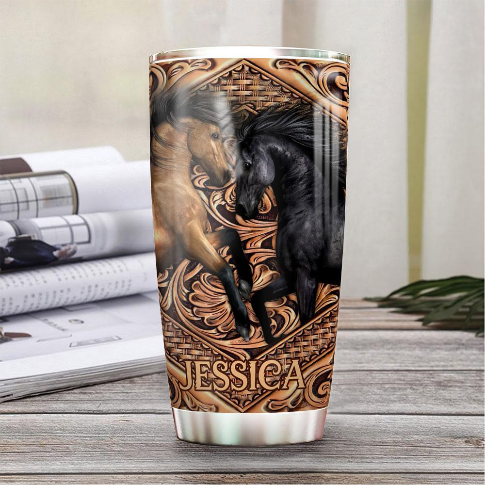 Personalized Horse Couple Leather Style HLZ2312007 Stainless Steel Tumbler