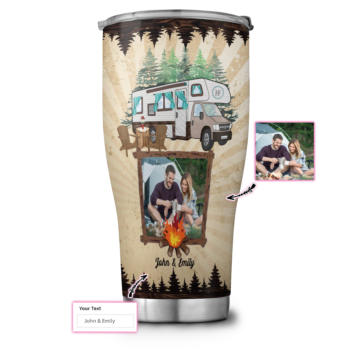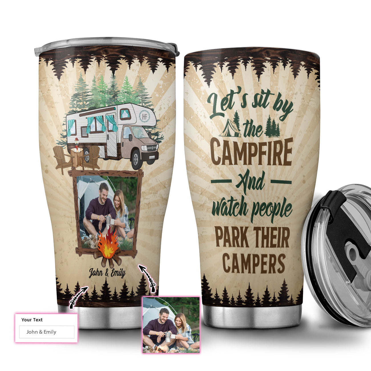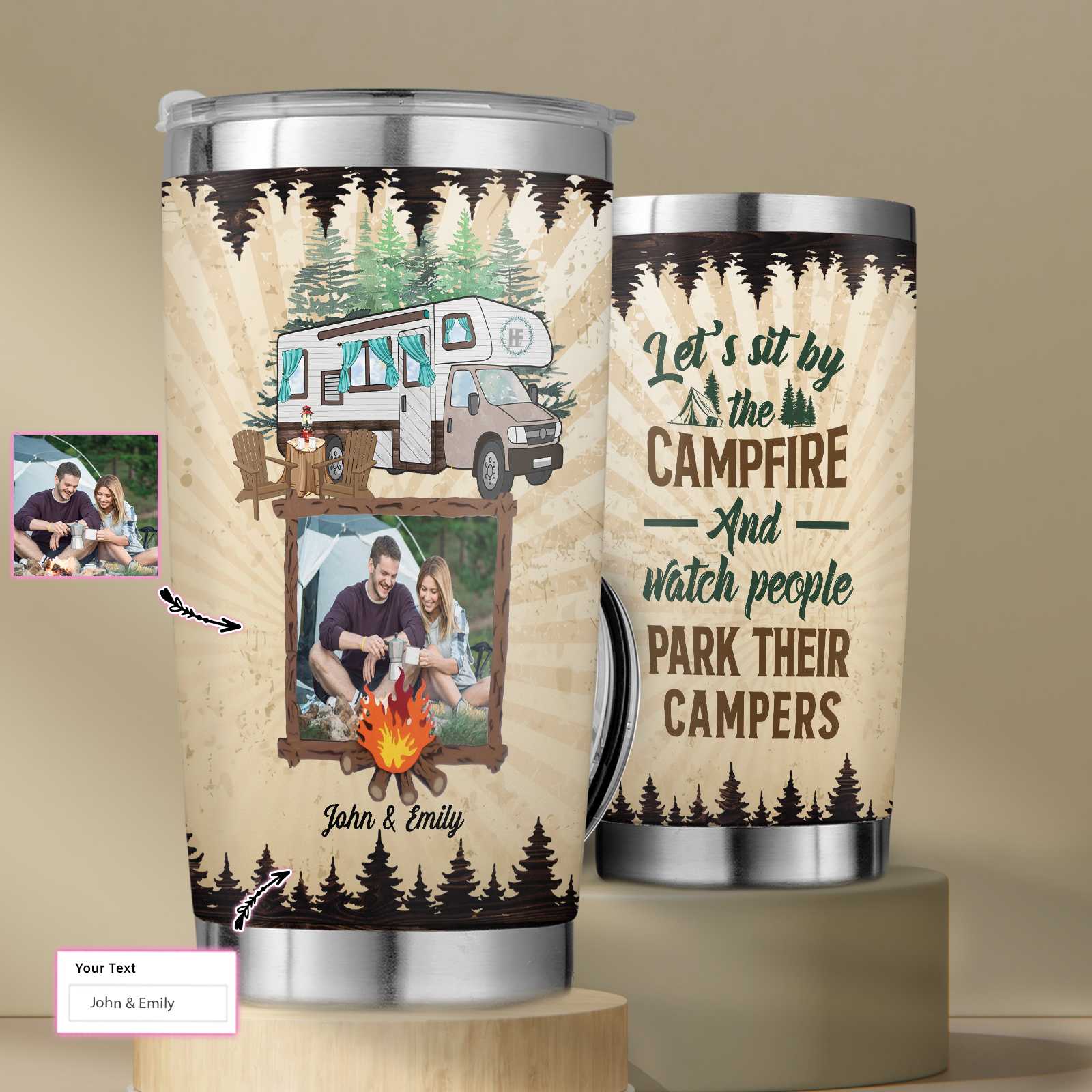 So whether you're looking to show off your own name or create a personalized gift for someone special, LateAndLow Store has got you covered. Start designing your own custom Personalized Husband And Wife Campers Custom Stainless Steel Tumbler, Campfire Stainless Steel Cup With Lid For Couple print-on-demand product today, and let us bring your vision to life!
