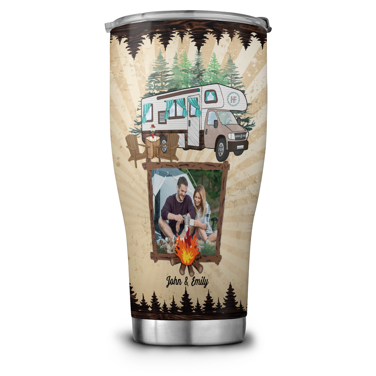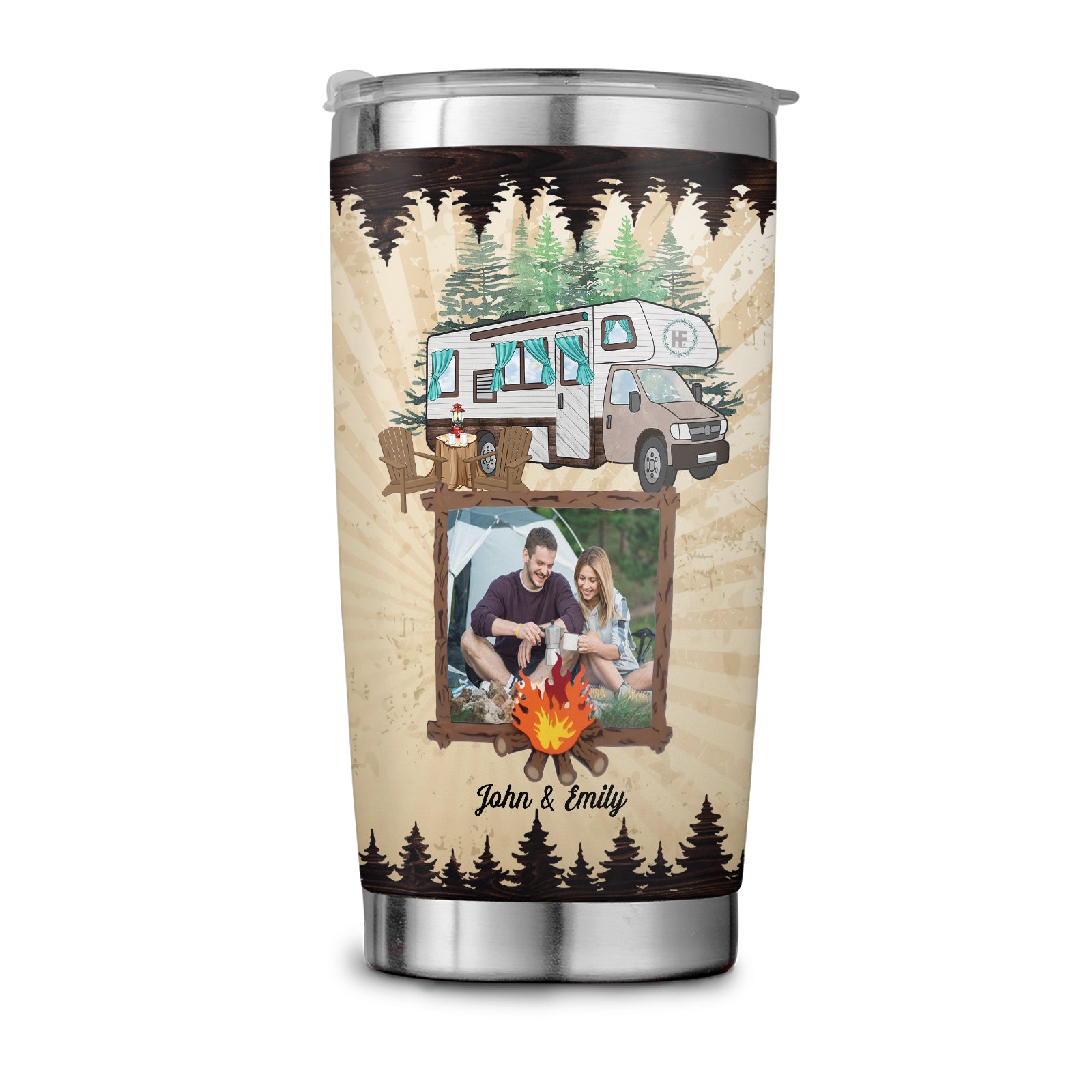 Personalized Husband And Wife Campers Custom Stainless Steel Tumbler, Campfire Stainless Steel Cup With Lid For Couple