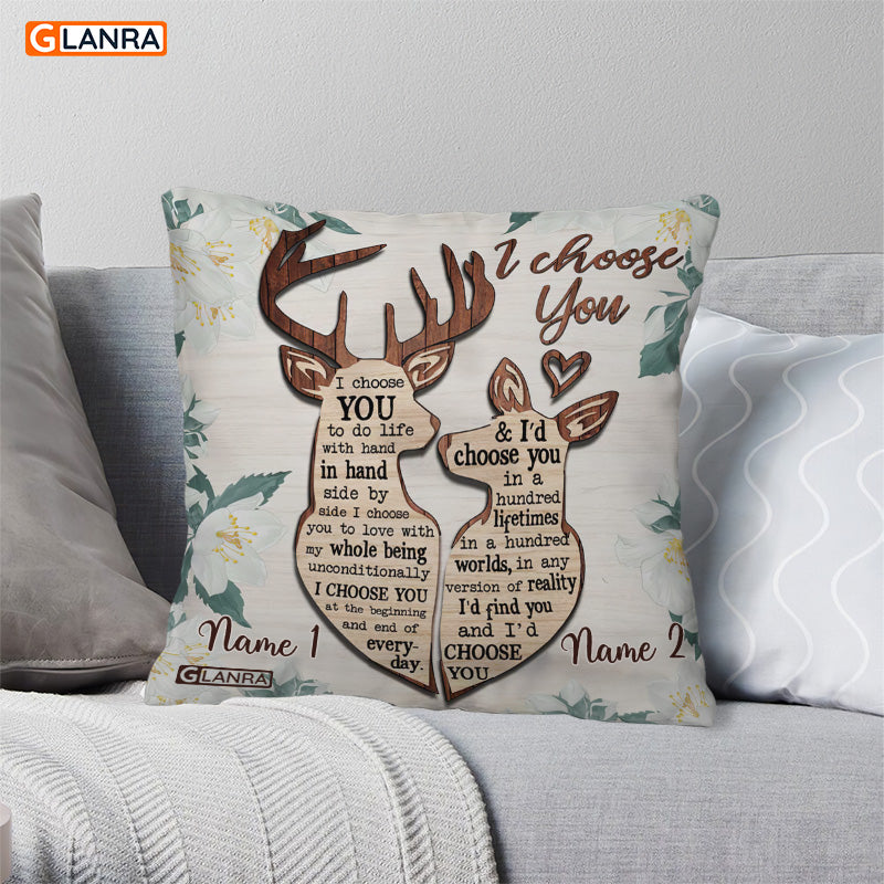 So whether you're looking to show off your own name or create a personalized gift for someone special, LateAndLow Store has got you covered. Start designing your own custom Personalized I Choose You Pillow, Custom Deer Hunting Couple Pillow, Hunting Pillow, Deer Pillow, Couple Pillow (Insert Included) print-on-demand product today, and let us bring your vision to life!