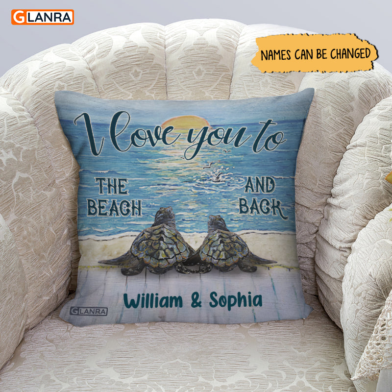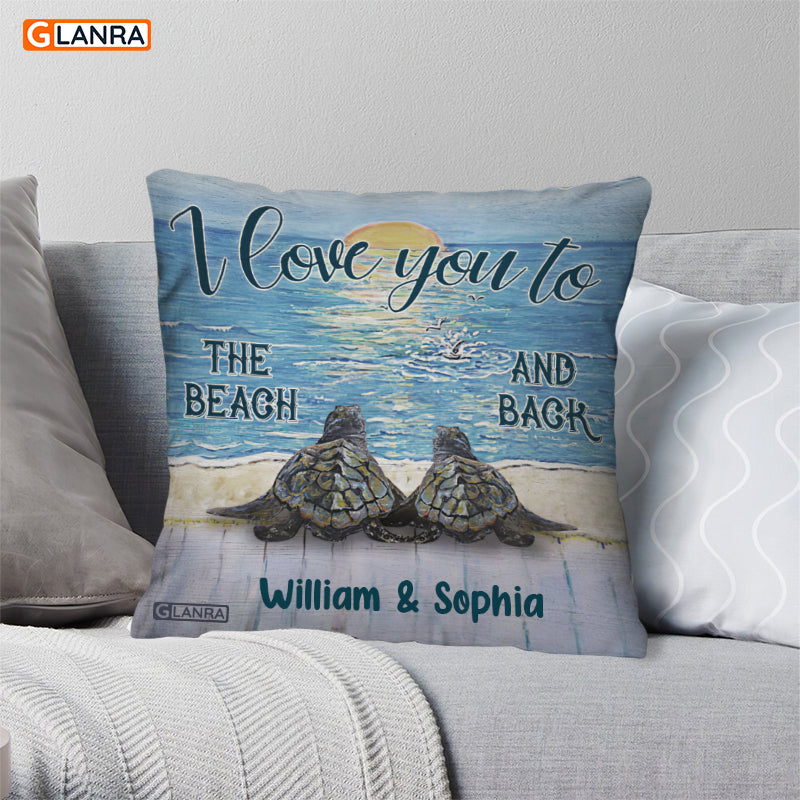 Personalized I Love You To The Beach And Back Pillow, Custom Turtle Couple Pillow, Turtle Pillow, Couple Pillow, Husband Wife Pillow (Insert Included)