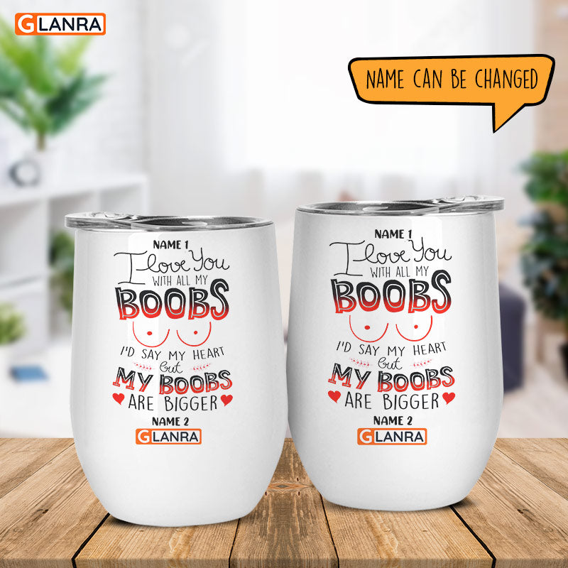 Personalized I Love You With All Wine Tumbler, Custom Couple Wine Glasses, Wine, Stainless Steel, Water Bottle, Glitter, Metal, Insulated, Tumbler