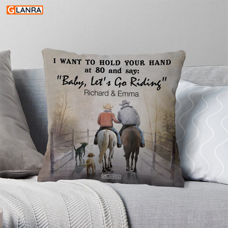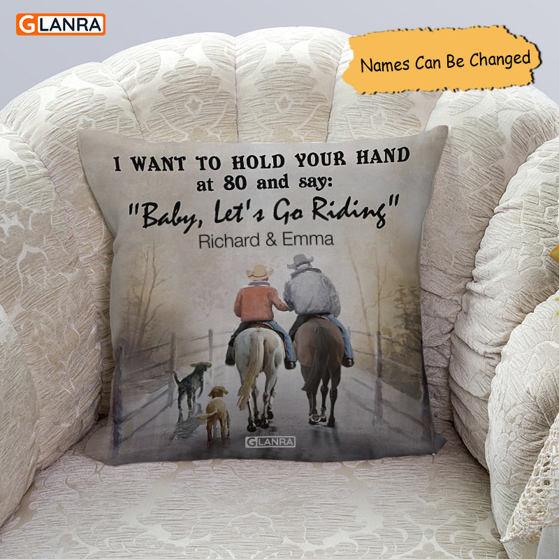 Personalized I Want To Hold Your Hand At 80 And Say Baby Let’S Go Riding Pillow, Custom Riding Couple Pillow, Couple Pillow (Insert Included)