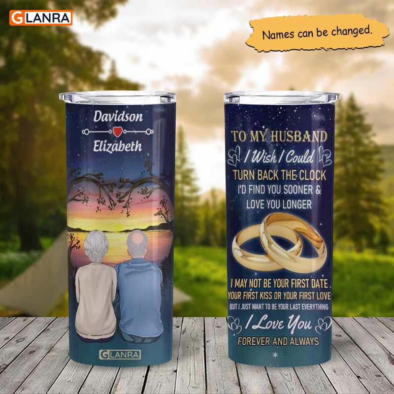 Personalized I Wish I Could Turn Back The Clock Skinny Tumbler, Custom Couple Water Bottle, Stainless Steel, Metal, Insulated, Glitter, Tumbler
