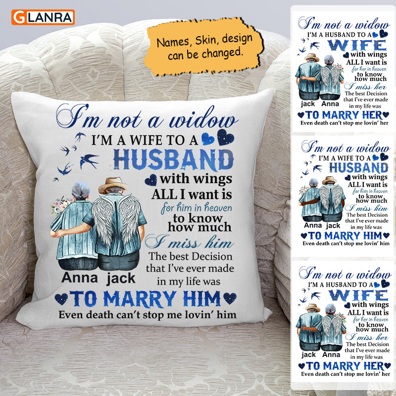 Personalized I’M Not A Widow, I’M A Husband To A Wife, Custom Couple, Memorial Pillow (Insert Included)