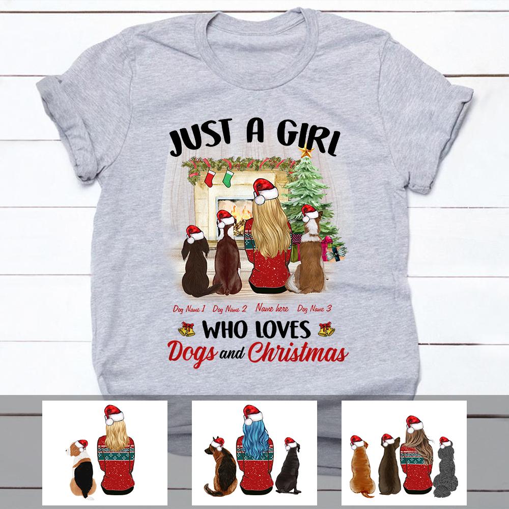 Personalized Just A Girl Who Loves Dogs And Christmas T Shirt