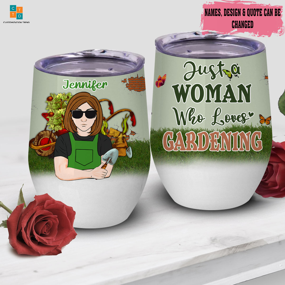 So whether you're looking to show off your own name or create a personalized gift for someone special, LateAndLow Store has got you covered. Start designing your own custom Personalized Just A Woman Who Love Gardening Wine Tumbler, Custom Bestie , Gardening Lover Wine Tumbler print-on-demand product today, and let us bring your vision to life!